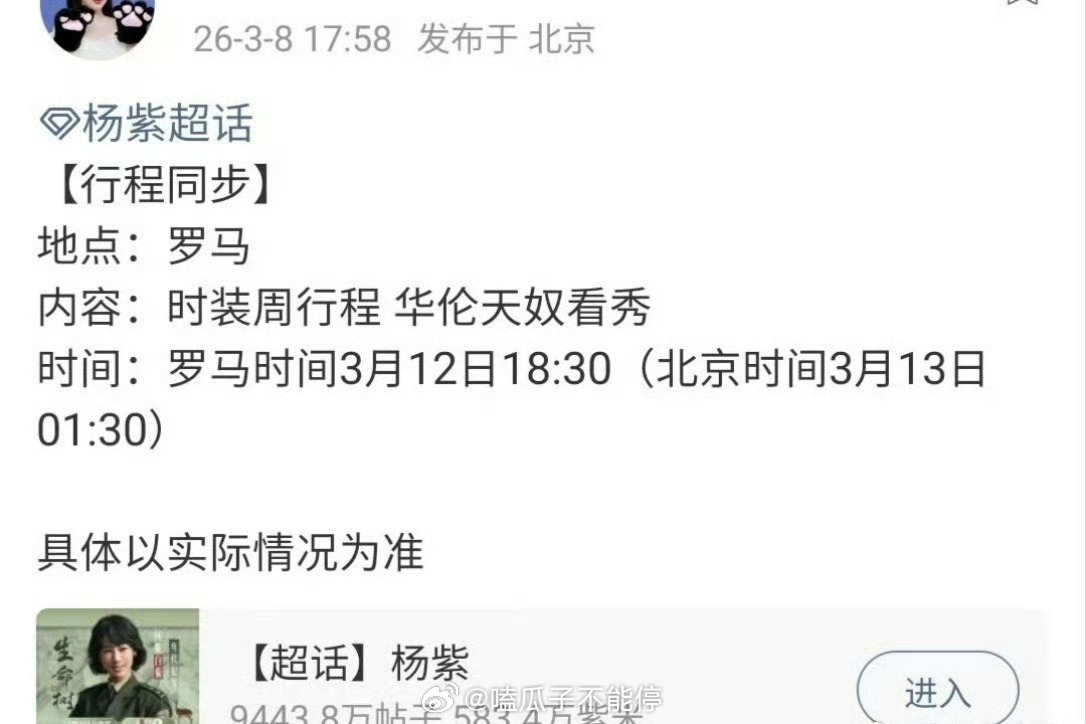 杨紫确定出席时装周,华伦天奴看秀,超级期待!
