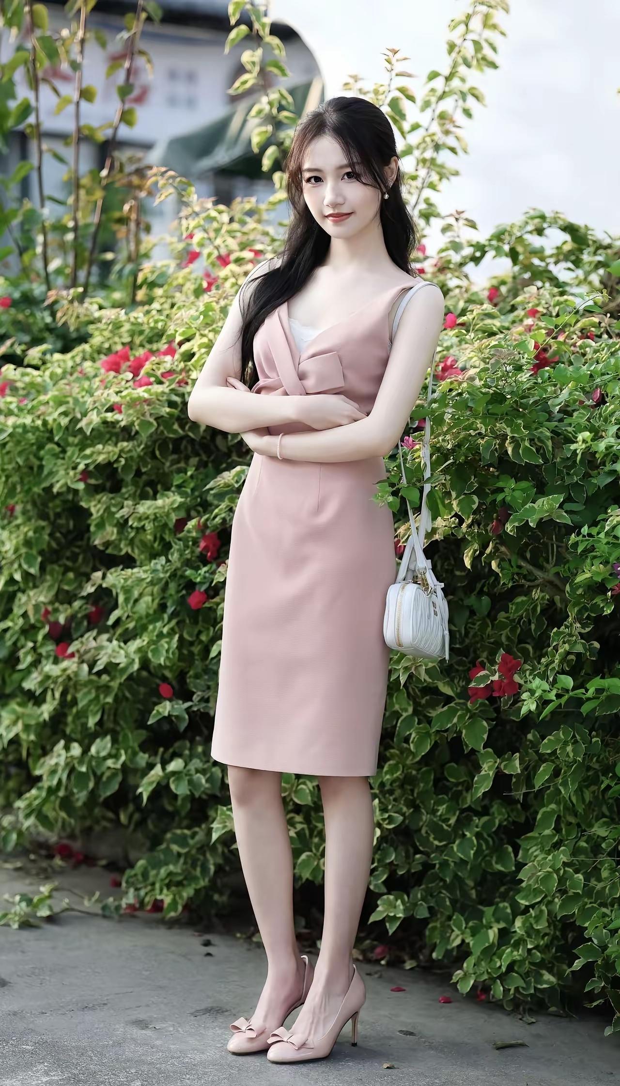 温柔粉穿搭,湖边漫步,静享美好时光