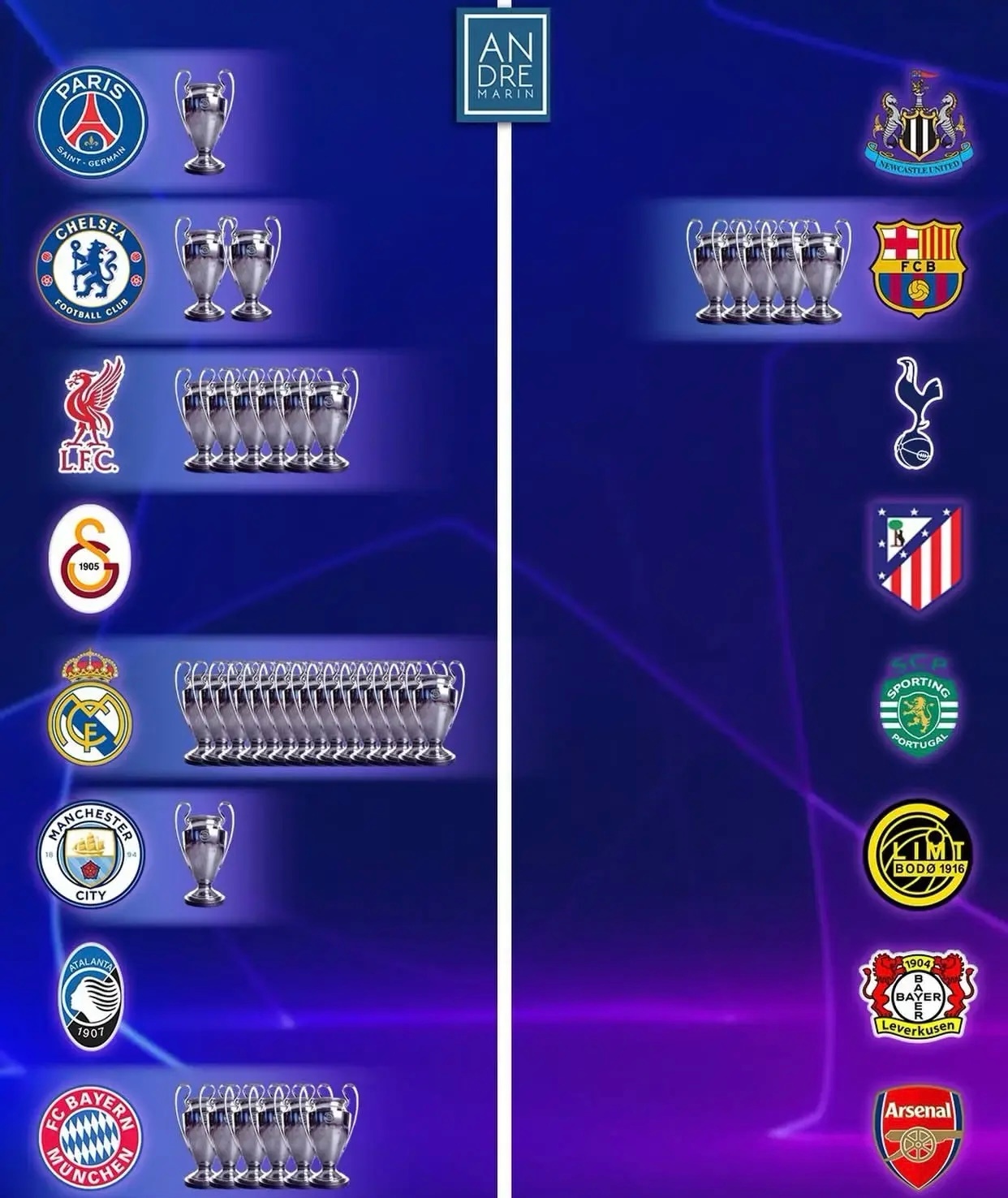 欧冠 这次谁能夺冠?欧冠十六强冠军数量一览欧冠十六强出炉