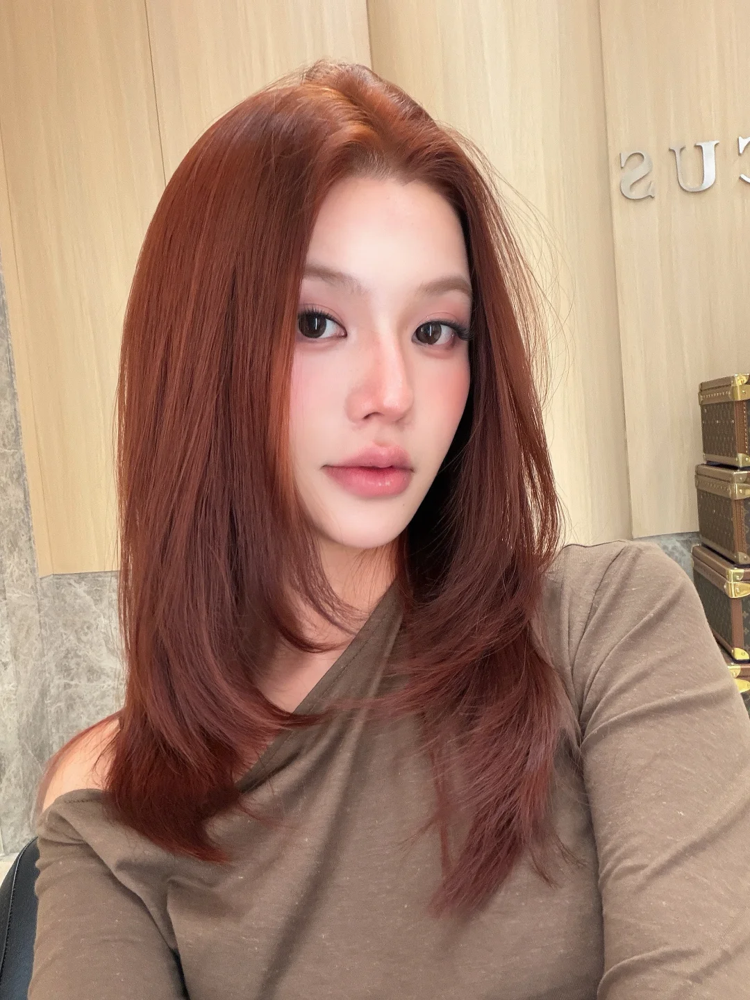剪了一个高层次中长发 染了新发色 怎么样这个颜色还蛮显白