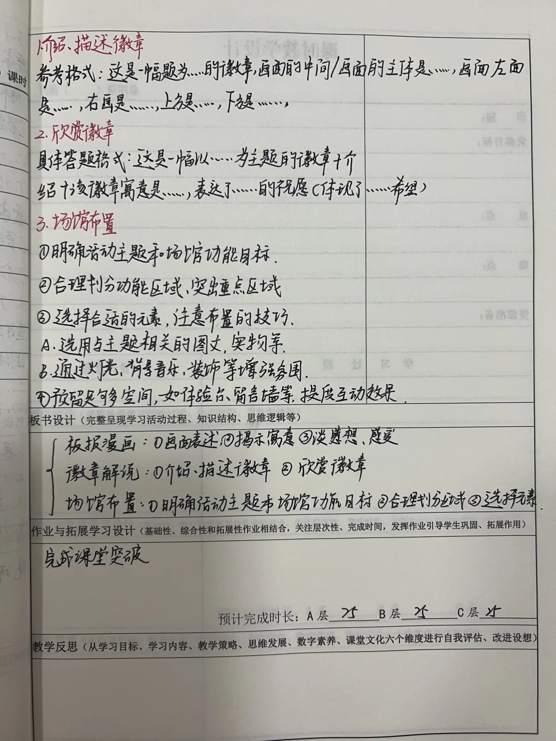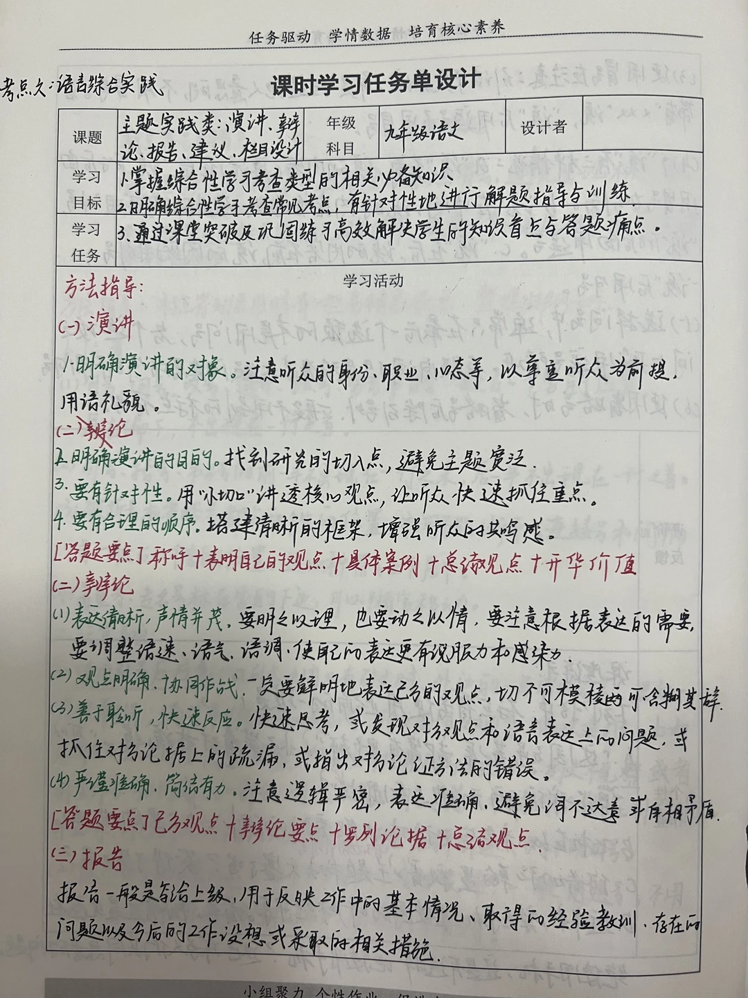 学校换教案本了,不过板块差不多。 主题实践类:演讲 辩论 报告 建议 栏目设计 活动实践类:赛事活动 调查访问 函请启事 倡议规章 宣传应用类:板报漫画 徽章解说 场馆布置 这一部分类似于之前的综合性学习