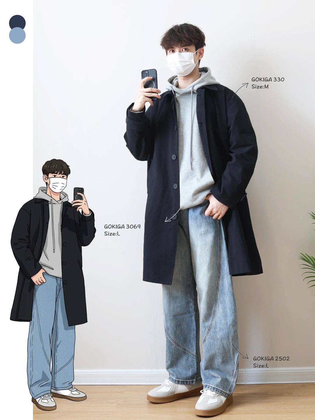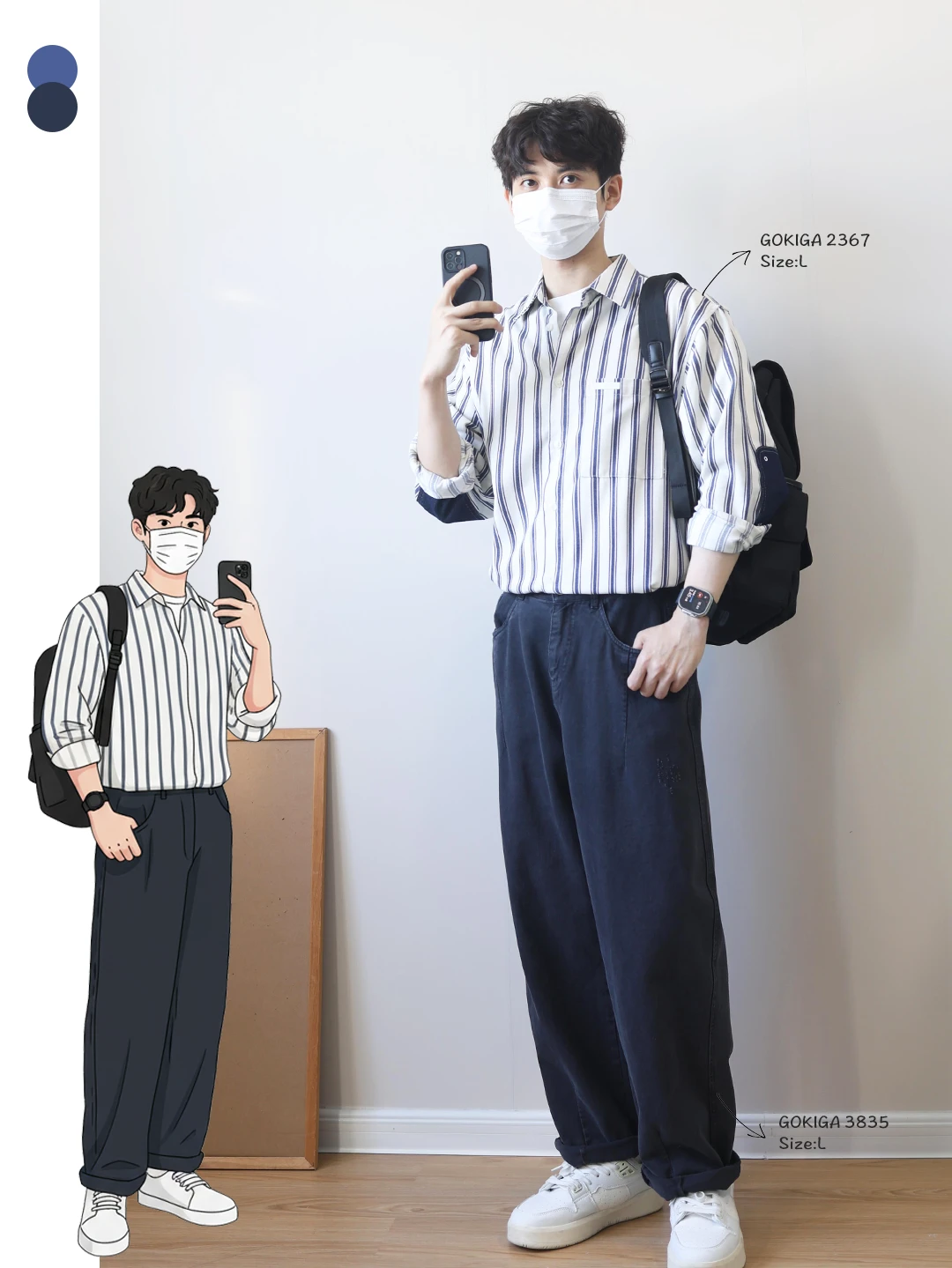 🔘藏青搭配米白是经典的干净配色,上深下浅视觉会更加利落,整体看起来清爽又有质感!