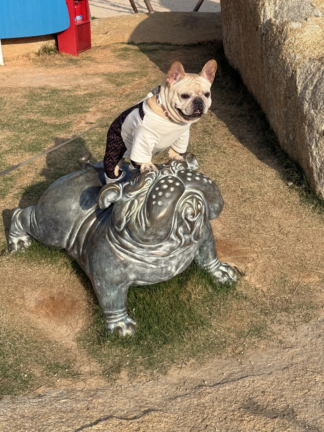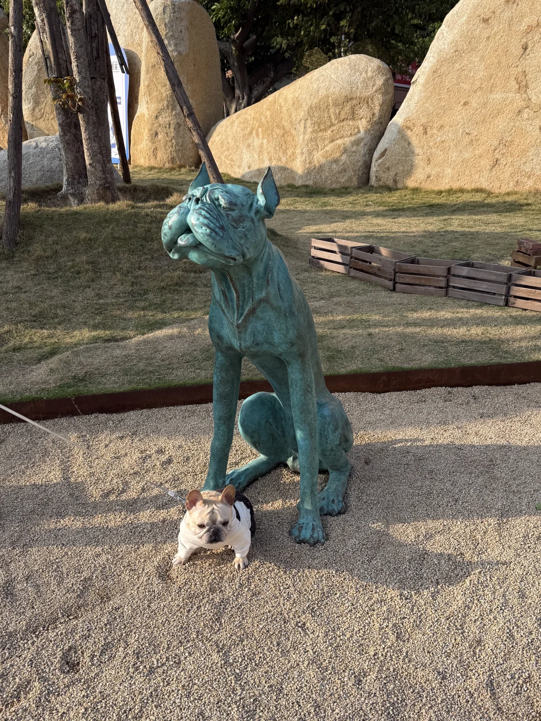 口袋公园好多斗牛犬的铜像阿哈哈哈