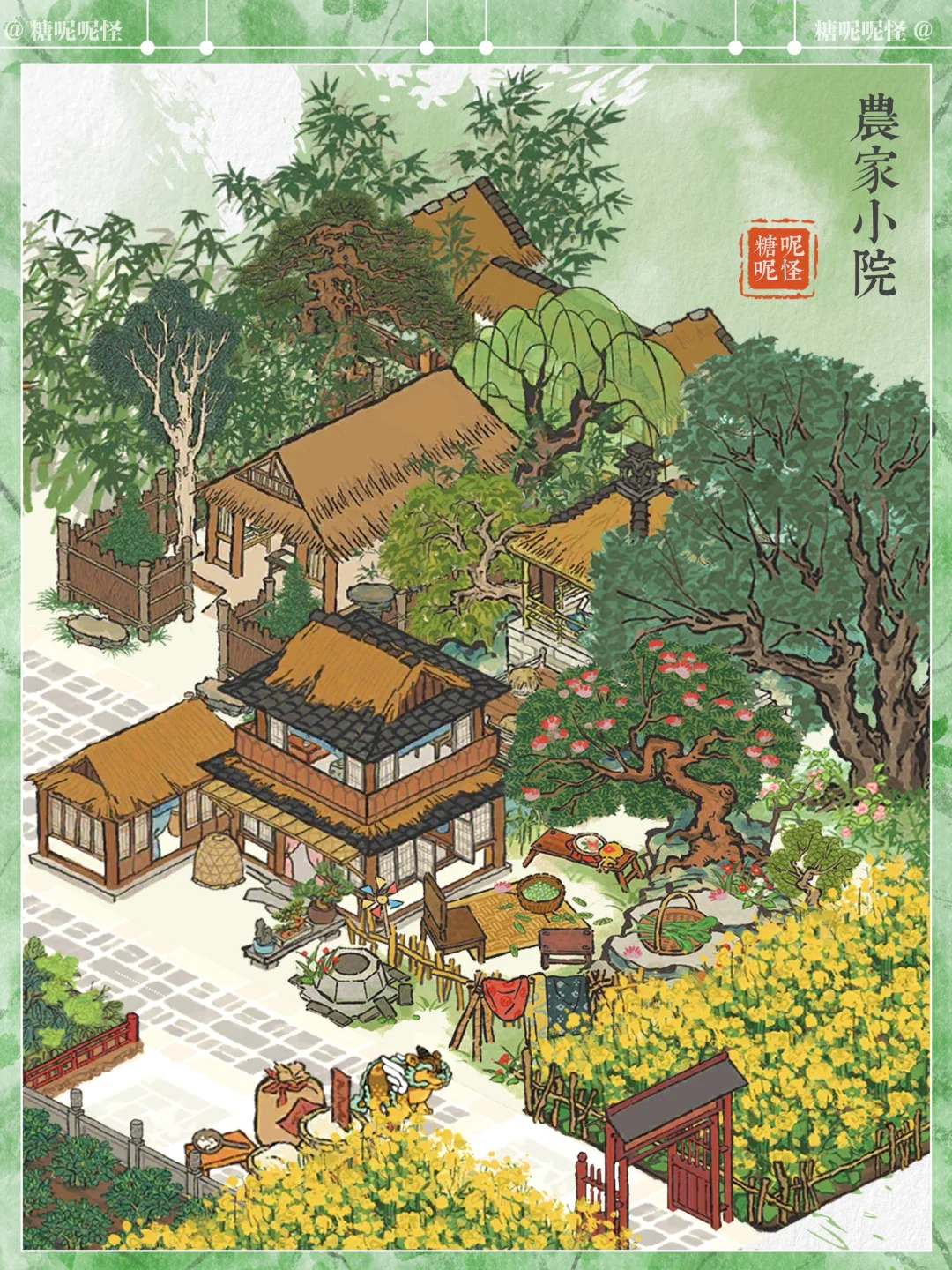 耕读是一种简单纯粹的状态,追求在自然生态的平衡中修养劳作。 许许多多的古画中都流露出古人耕读的状态,将自然世界的丰富多彩融入生活之中,体会一种"采菊东篱下,悠然见南山"的生活意境。 农家小院里恰逢油菜花田繁盛之时……院主人采茶、种菜、耕读……好一派田园风光……