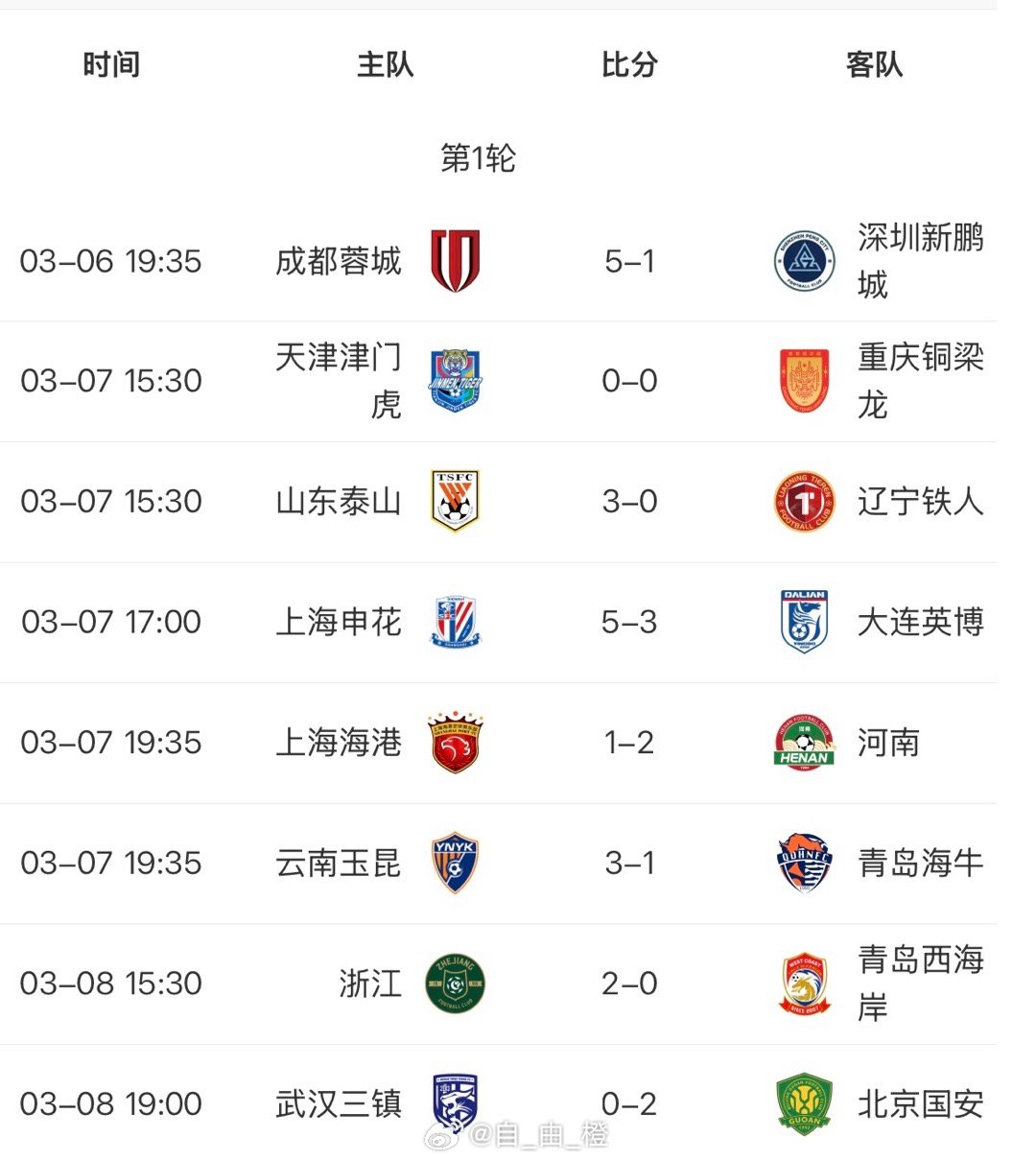 中超第1轮综述:万众期待中,2026赛季中超联赛拉开序幕,与以往不同的是本赛季有9支球队是以负分起步,传统豪强上港、申花、国安、泰山都被不同程度的扣分,这赛季的争冠格局发生了很大的变化。泰山首轮面对冲超成功的辽宁铁人,作为球队历史上绝对的功勋球员,大羽时隔多年再次回到了他熟悉的城市,球迷也用欢呼和横幅,来欢迎我们曾经的射手王。但是比赛开始后,就没有了情分可讲,泰山队凭借谢文能、克雷桑、泽卡的进球3:0轻松拿下辽宁铁人。但高准翼在拼抢中,眉骨骨折,赛后缝了30针,还是让球迷有些担心。新援中卫阿尔瓦罗几次关键的封堵,也得到了球迷的认可。成都、申花、国安本轮面对的对手实力一般,也都不出意外的迎来胜利。上港主场为蔡慧康、吕文君举办了退役仪式,但没想到的是在裁判唐顺齐拙劣的吹罚下,让河南砸了场子,客场2:1有惊无险的拿下海港,给了卫冕冠军当头一棒!作为这赛季降级的热门青岛海牛,被云南玉昆3:1胖揍,青岛海牛在李霄鹏离开后,还想要下赛季留在中超,难度可想而知。下轮泰山队主场面对赛季最重要的老对手北京国安,球迷早就摩拳擦掌,打国安无需多言,看两队积分谁先清零,3月14日下午15:30咱们奥体见!山东泰山自由橙 附:【中超第1轮比分、积分榜、射手榜】
