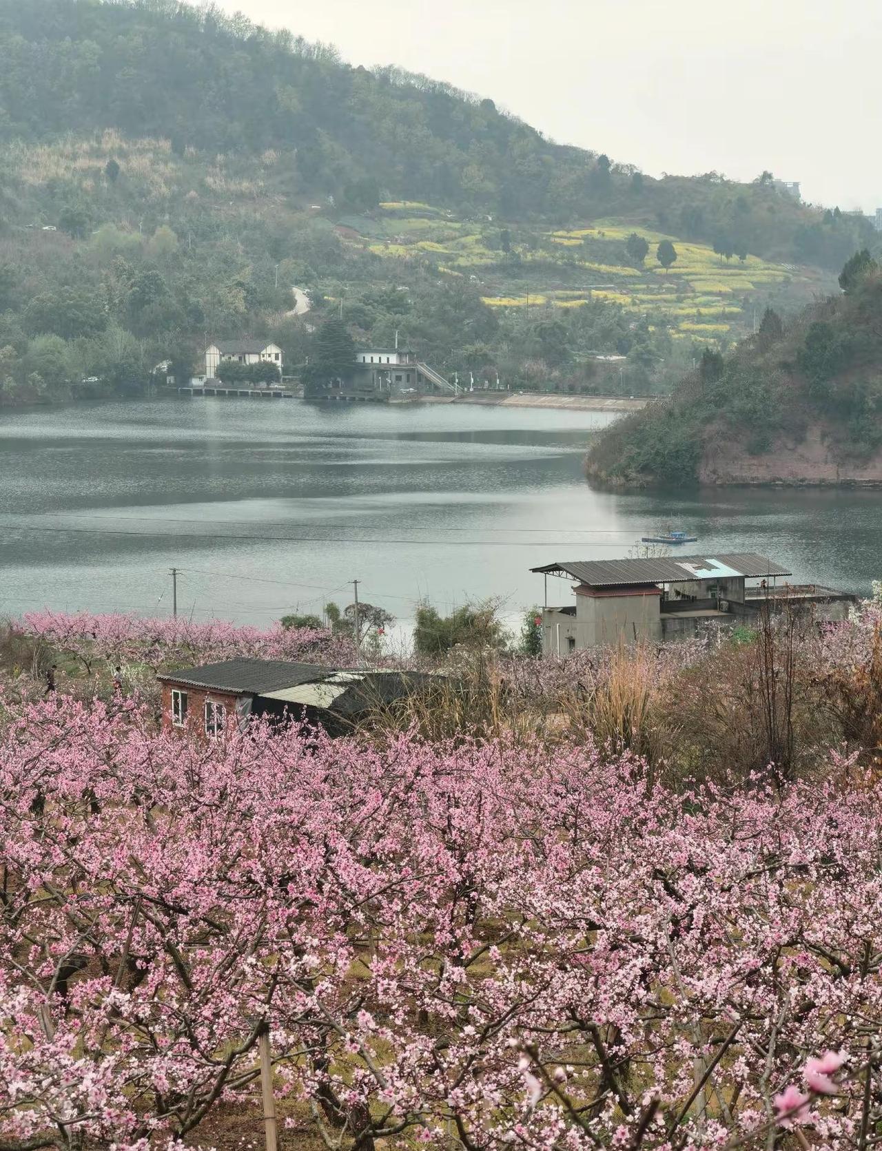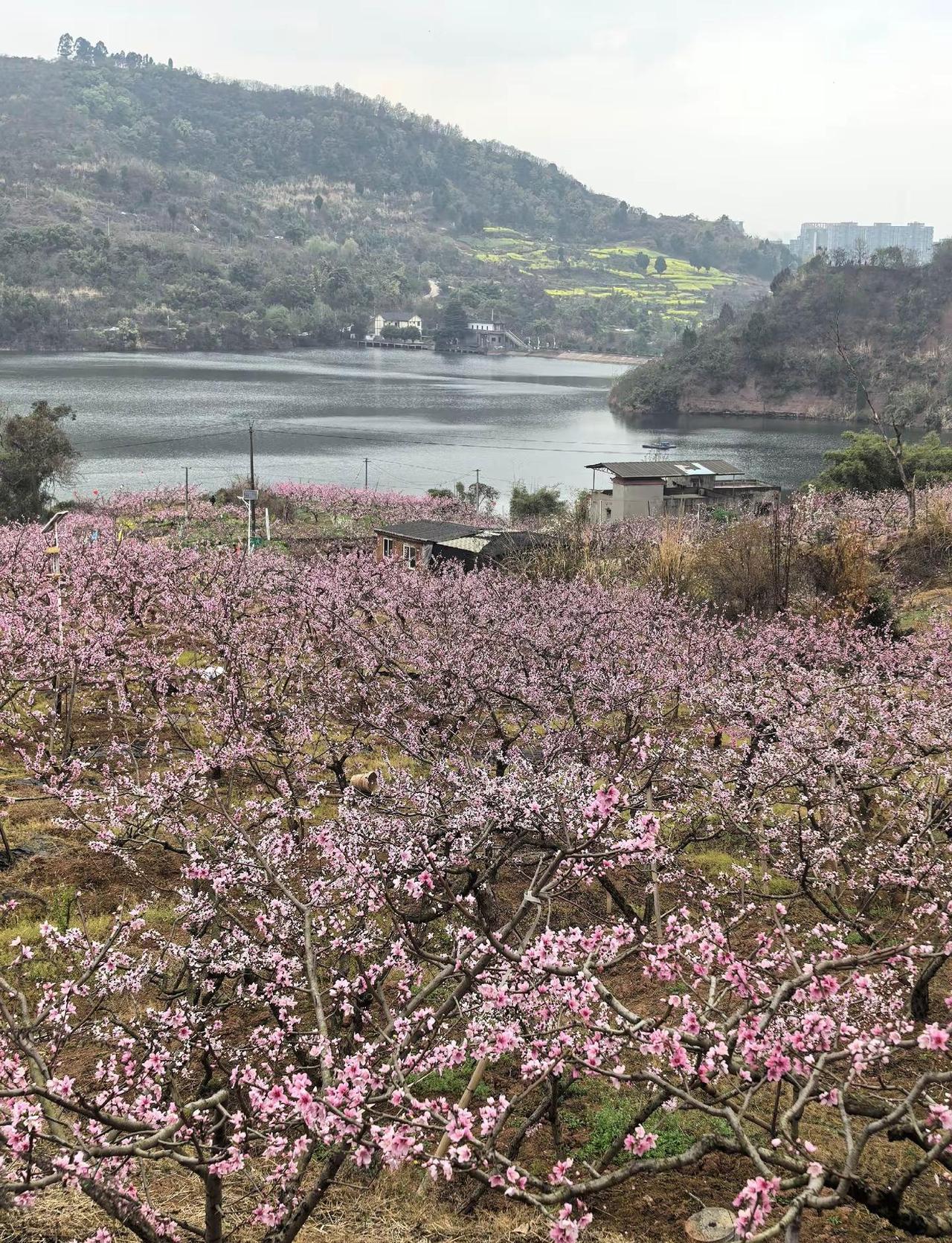 龙泉山的桃花开了,宝狮湖是最佳观赏地之一。旅行推荐官 成都周边游 桃花 周末去哪儿