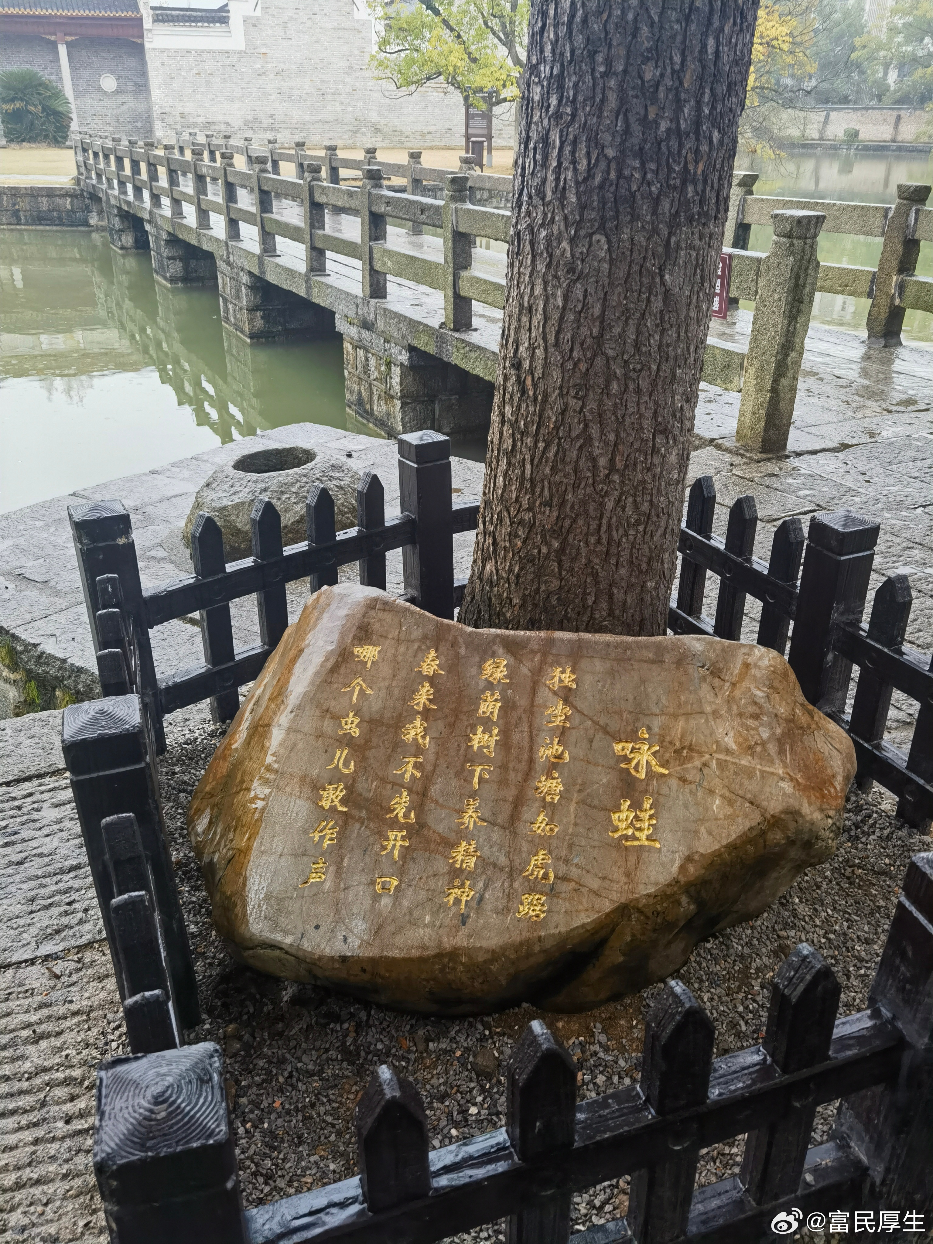 初入书院,一池春水渌波,细雨斜织如画。遂撑伞环湖徐行,雨打伞面,声若碎玉。湖心有桥如虹,踏石而过,见垂柳初绽鹅黄,与雨雾相映,恍若水墨晕染。过桥即见书院大门,青砖黛瓦,俨然旧时气象。