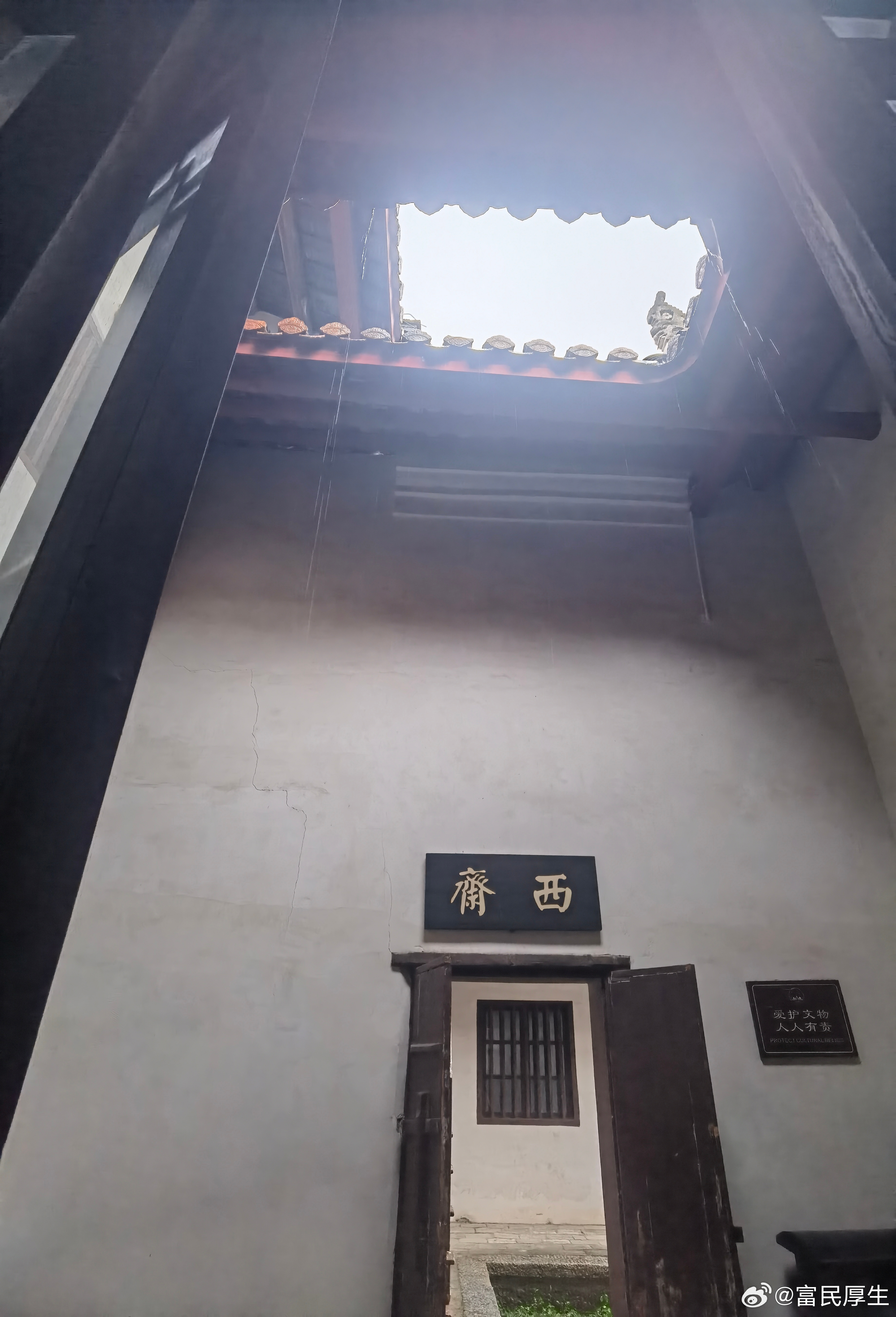 穿行弄台天井间,廊庑幽深,苔痕上阶。忽忆少年时读《讲堂录》,见润之先生窗课云:“闭门求学,其学无用。欲从天下国家万事万物而学之。”今置身此院,想见当年少年负笈而来,或许亦曾在这玉兰树下展卷,或许亦在这雨廊中踱步。彼时中国山河破碎,而此院书声不绝,终养成济世之才。
