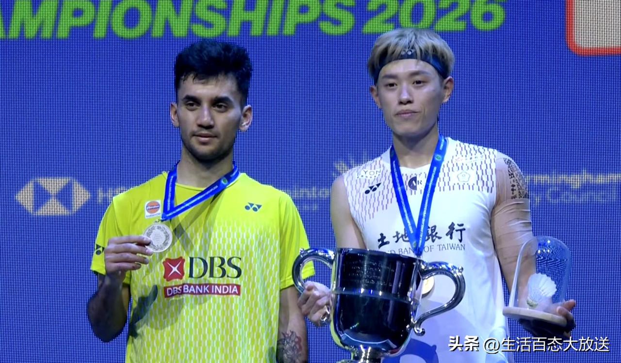 羽毛球全英赛,5项冠军/全部产生 1,男单冠军 林俊易(中国台北) 奖金101500美元,12000积分 2,女单冠军 王祉怡(中国🇨🇳) 奖金101500美元,12000积分 3,男双冠军 徐承宰/金元昊(韩国🇰🇷) 奖金107300美元,12000积分 4,女双冠军 刘圣书/谭宁(中国🇨🇳) 奖金107300美元,12000积分 5,混双冠军 叶宏蔚/詹又蓁(中国台北) 奖金107300美元,12000积分 1,男单亚军 拉克什亚(印度🇮🇳) 奖金49300美元,10200积分 2,女单亚军 安洗莹(韩国🇰🇷) 奖金49300美元,10200积分 3,男双亚军 谢定峰/苏伟译(马来西亚🇲🇾) 奖金50750美元,10200积分 4,女双亚军 白荷娜/李绍希(韩国🇰🇷) 奖金50750美元,10200积分 5,混双亚军 吉凯尔/德尔吕(法国🇫🇷) 奖金50750美元,10200积分 五项决赛完整赛果如下 徐承宰/金元昊2-1谢定峰/苏伟译 王祉怡2-0安洗莹 林俊易2-0拉克什亚 刘圣书/谭宁2-0白荷娜/李绍希 叶宏蔚/詹又蓁2-0吉凯尔/德尔吕 2026全英羽毛球公开赛落幕,中国队与中国台北队各拿两枚金牌,并列排名奖牌榜首位,韩国队1金2银排名第三位,印度队,法国队,以及马来西亚队则各自斩获一枚银牌,这三支代表队并列排名第四位
