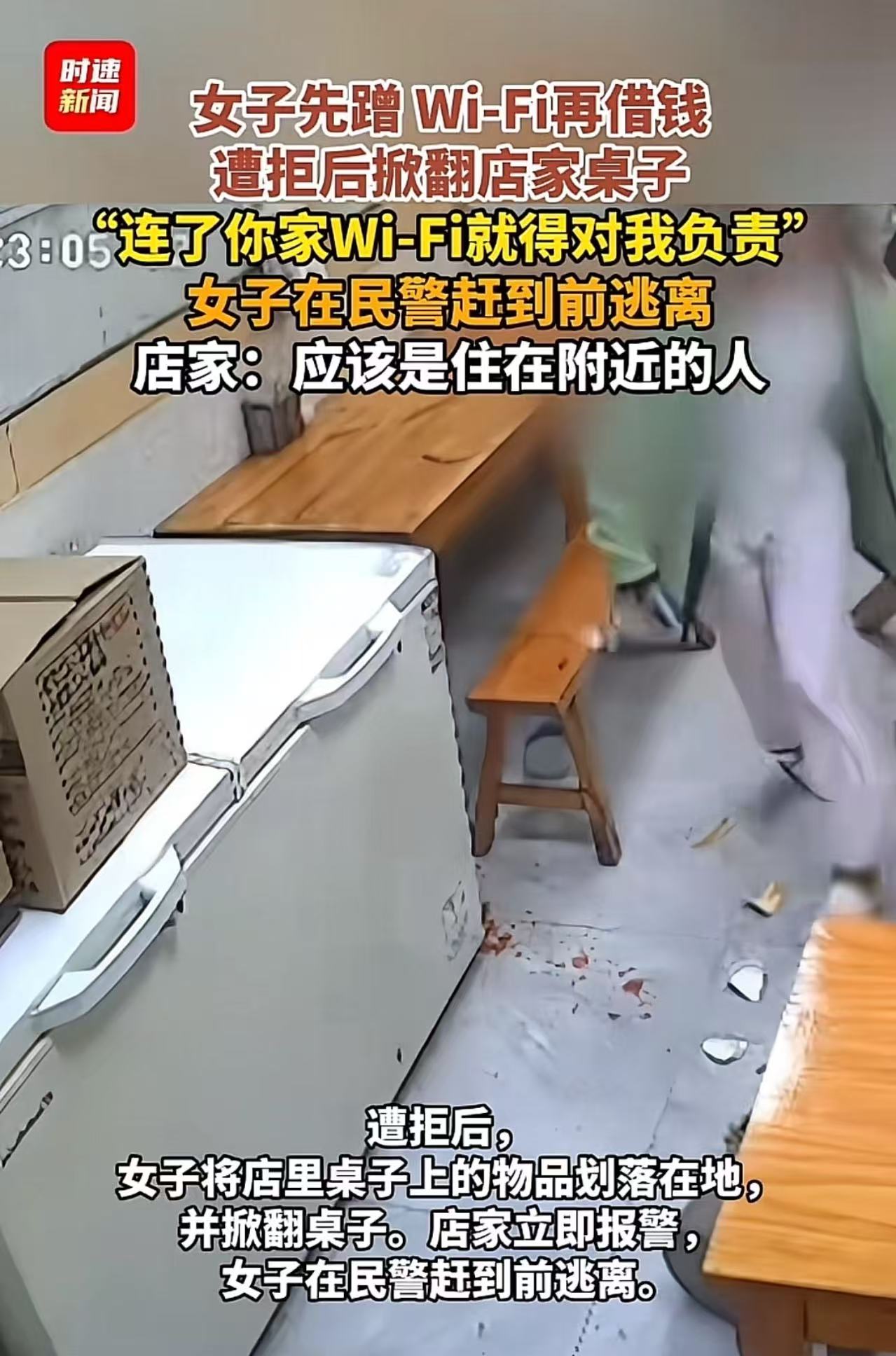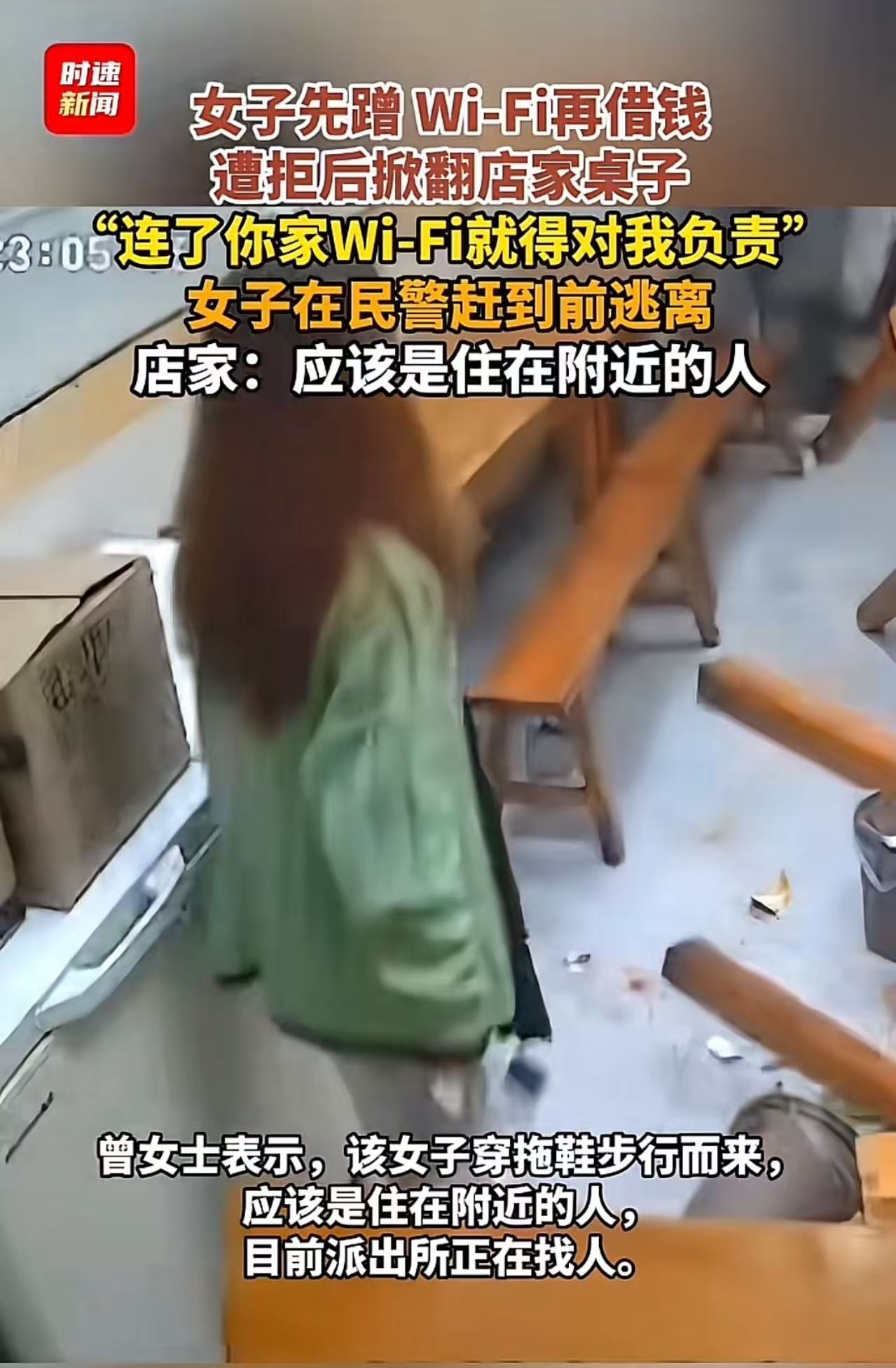 太奇葩了!江西赣州,女子蹭餐馆免费WiFi,还跟老板借钱,老板拒绝后女子把桌子掀翻了,口中还理直气壮地说着:“我连了你家WiFi就得对我负责!”网友:现在的人怎么能这么无赖?