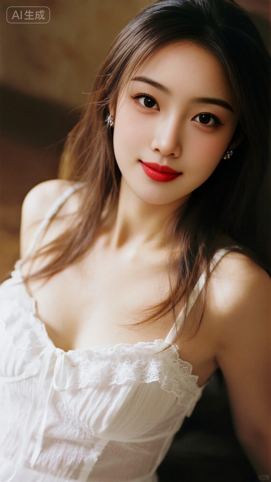 晨雾漫过田垄,裹住她纤细的肩远山隐在朦胧里,晕开水墨的淡针织裙的纹理,在雾色