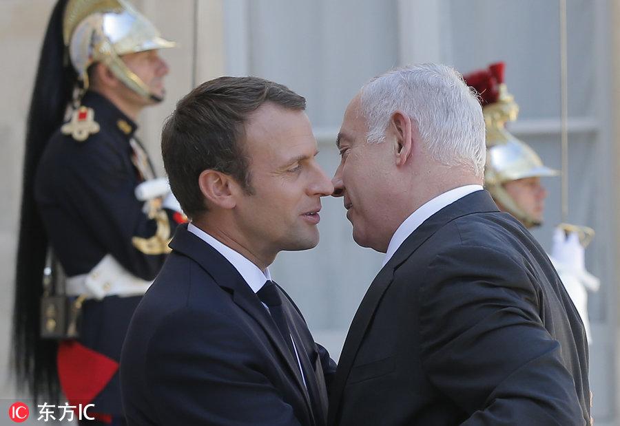 内塔尼亚胡和马克龙,他们一样的高,一样的显年轻,他们相同的事情不少,包括一起打击伊朗。