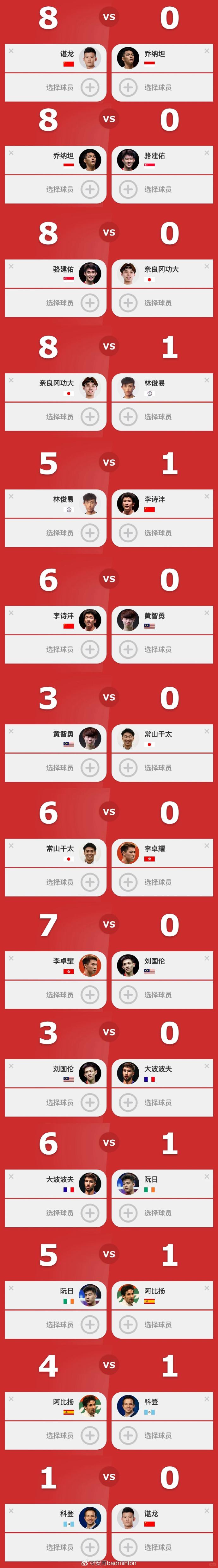 羽毛球男单真正的食物链 始于龙哥,终于龙哥 PS:不知道龙哥看到后会有啥感想。。。哈哈