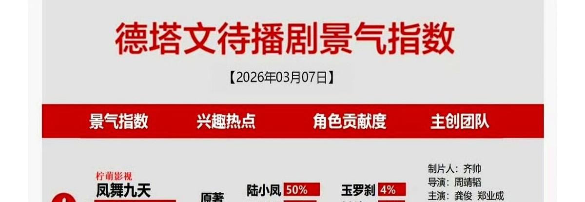 内娱有个怪事,有些榜单的数据,总喜欢给他“去掉一个最高分”。 结果,去掉之后,他还是第一。 说的就是龚俊。新剧《凤舞九天》3月6号在兰州开机,演的是古龙笔下的陆小凤。 柠萌影视和腾讯视频的大项目,搭档郑业成、陈乔恩,阵容没得说。 开机才一天,热度直接登顶。从去年的《暗河传》到现在,每次都是这样。 就算有些“郫县酸黑”再怎么念叨,数据是实打实的,市场是认账的。 顶流的位置,终究还是得靠作品和实力坐稳。