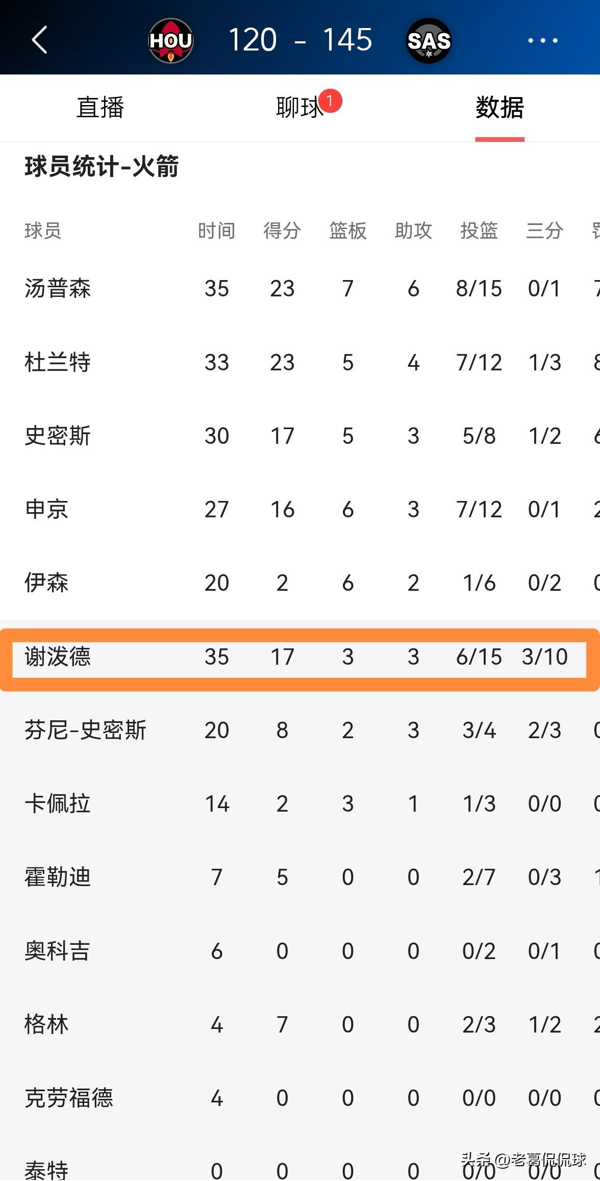 火箭新星谢波德真是太把自己当回事了!在今天火箭客场以120:145惨败于马刺的比赛中,谢波德完全把自己当成了球队的进攻核心,他的出手数高达15次,和阿门-汤普森并列全队第一。 整场比赛下来,谢波德替补出战35分钟,投篮15中6,其中三分球10中3、罚球2中2非常低效的得到17分,还有4次失误和4次犯规,他的场上正负值为-9。 老实说,作为一名控卫,本场比赛谢波德完全没有履行好控卫的职责,从谢波德的出手数来看,他更想当一名得分后卫。