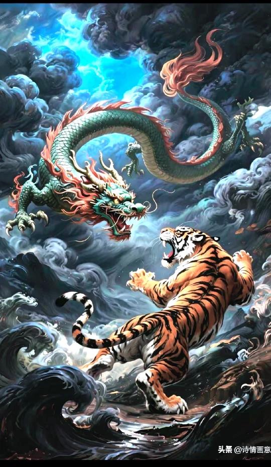 云涛怒卷起苍鳞, 虎啸风生撼地垠。 两霸争雄天地动, 龙腾九霄苍芎吟。