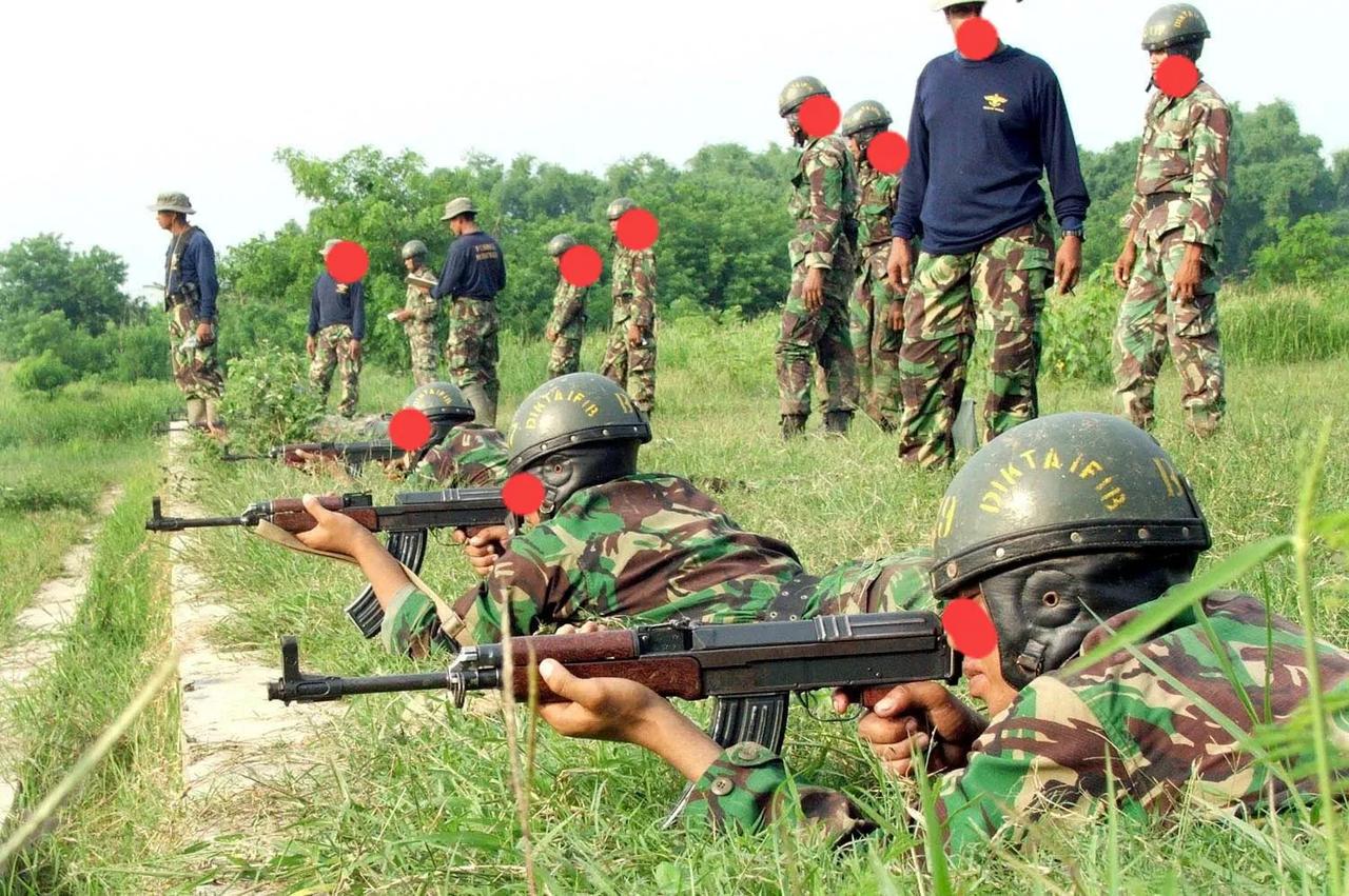 印度尼西亚特种海军陆战队中央训练学校学员与 Sa vz 58 7.62毫米突击步枪。