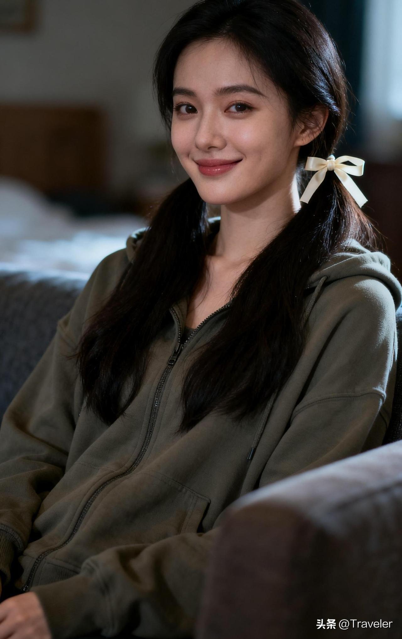 阳光下的甜美少女,头戴可爱发饰,散发着青春气息!🌞💖👩❤️💋👩