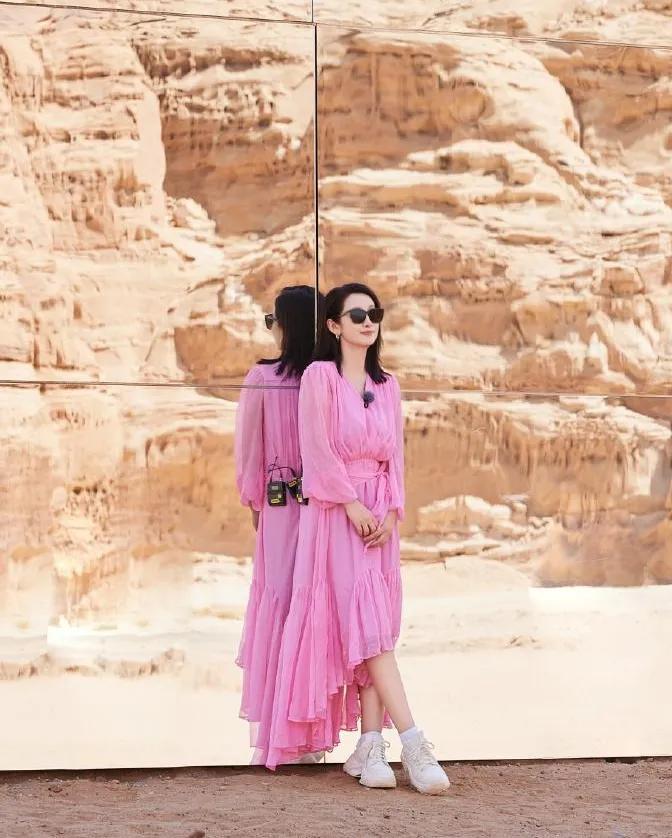 秦海璐粉色裙装太减龄了!💖 粉色雪纺裙+老爹鞋,甜而不腻,飒爽又少女,完全没有“大妈味”! 秦海璐 减龄穿搭