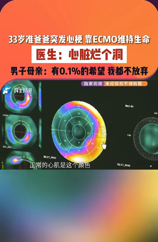 “悲剧还是发生了!”近日,河南,一位准爸爸因肋骨不舒服到医院就诊,谁知检查结果竟是心肌梗死,心脏烂了个洞,被紧急送往郑州抢救,医院诊断书上,光是病危病重的诊断就有十多条,甚至想人工移植心脏都做不到。网友:善待自己的身体吧! 据媒体3月7日报道,该男子今年才33岁,妻子已经怀孕6个月了,平日里他也不吸烟,就是偶尔喝个酒,熬个夜。不久前,他肋骨位置感觉不舒服,就去了医院。 检查结果一出,全家人都崩溃了,竟是心肌梗死。当地医生说,若是观察几天,可能人都没了。 医院出的诊断书上,光是导致病危病重的,就有十多条:急性心肌梗死、室间隔穿孔、肺部感染、呼吸衰竭等等等等。 家里人见到他时,已经浑身插满了管子,准备送往郑州抢救。靠着ECMO,男子撑到了重症监护室。 医生说,他这些病直接因素是他的血栓,抽烟熬夜都是高危因素。正常人的心肌应该是橙色的,可他的已经出现了大块黑色的坏死。 要想保命,就得想办法做心脏移植,男子现在的身体情况根本就不满足,何况还得寻找合适的供体,现在就只能先进行调理。 网友看后表示,好好的一个家,转眼间便危如累卵,高堂父母,家中妻子,还有未出生的孩子,他们的天瞬间就塌了,让人既心痛又惋惜。 意外发生在别人身上叫故事,发生在自己身上就叫事故。希望大家能够重视自己的身体,丢掉不良的生活习惯,多多锻炼身体。愿健康常伴,愿伤病远离! 信息来源:《33岁准爸爸突发心梗,靠ECMO维持生命,医生:心脏烂个洞,男子母亲:有0.1%的希望,我都不放弃》小莉帮忙