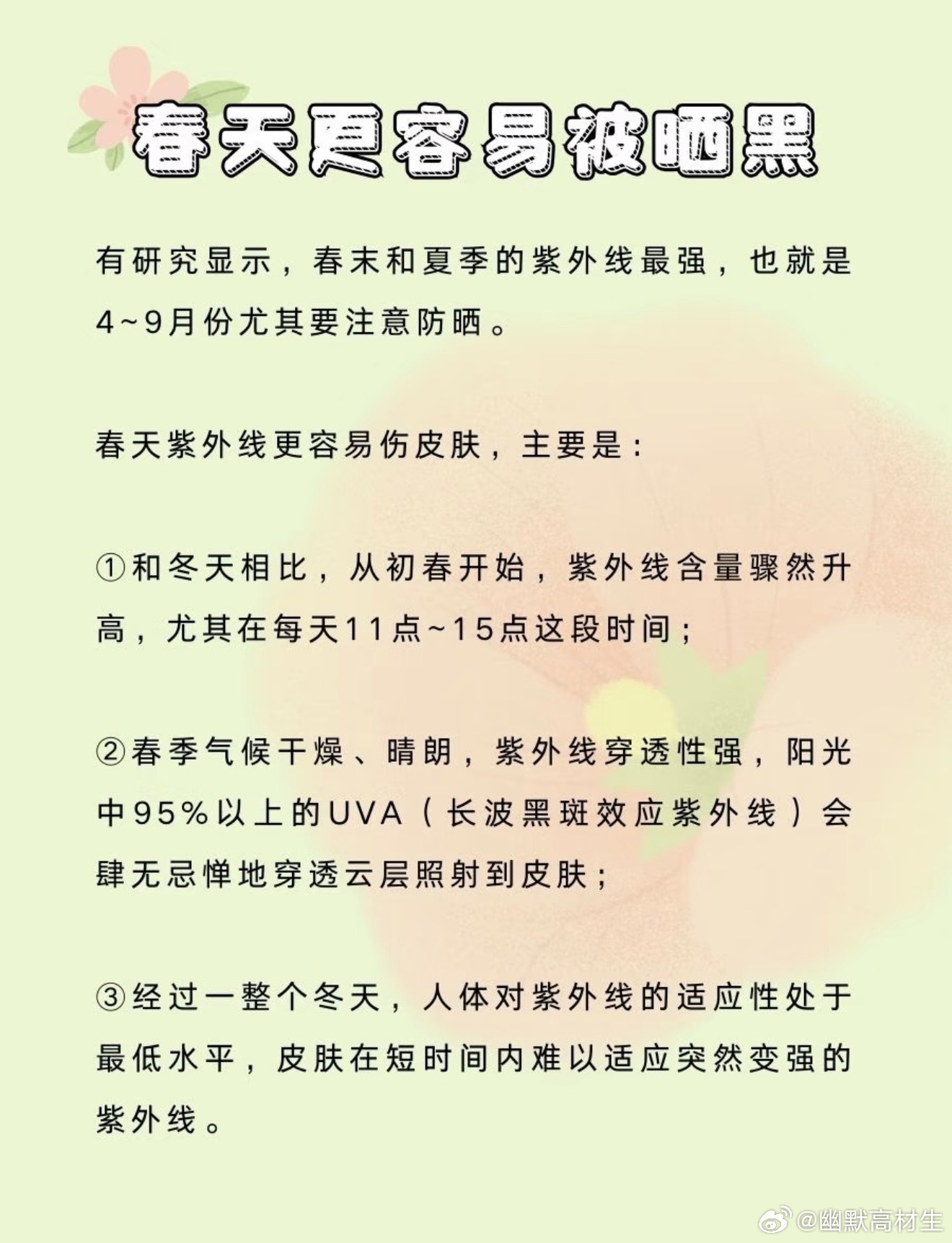 原来春天更容易被晒黑