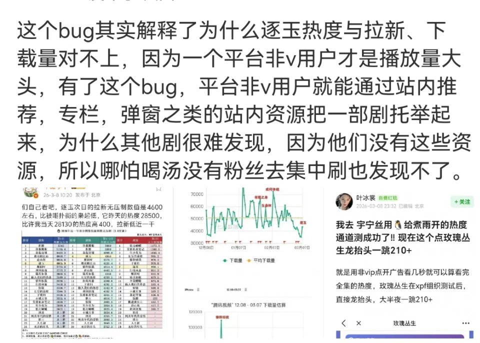 腾讯这种开天窗行为犯法了吧,制造虚假热度欺骗广告商。属于商业诈骗了。天龙人到底给了腾讯爱奇艺什么,让两个平台这么捧?我非常不理解。腾讯 完播