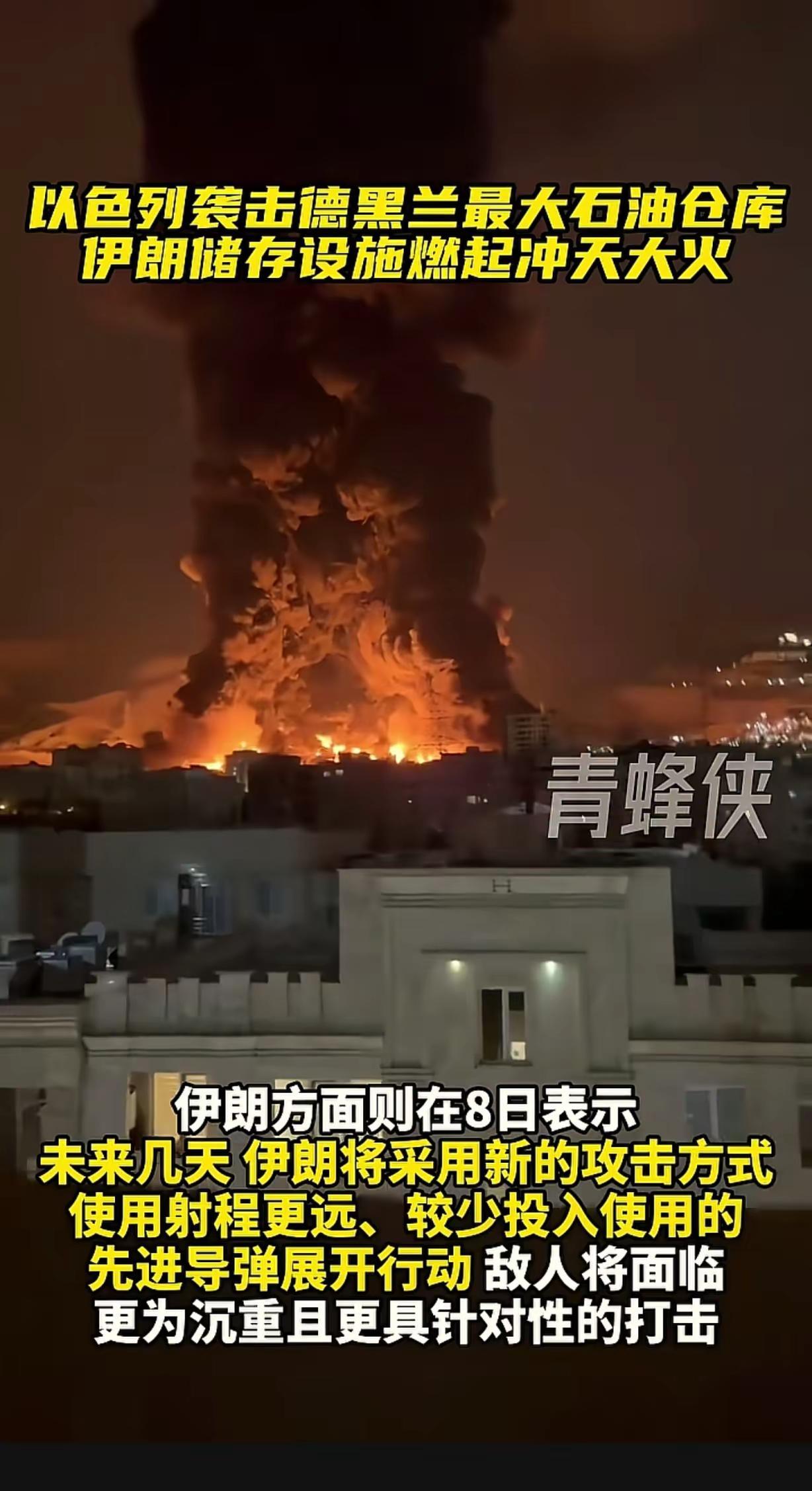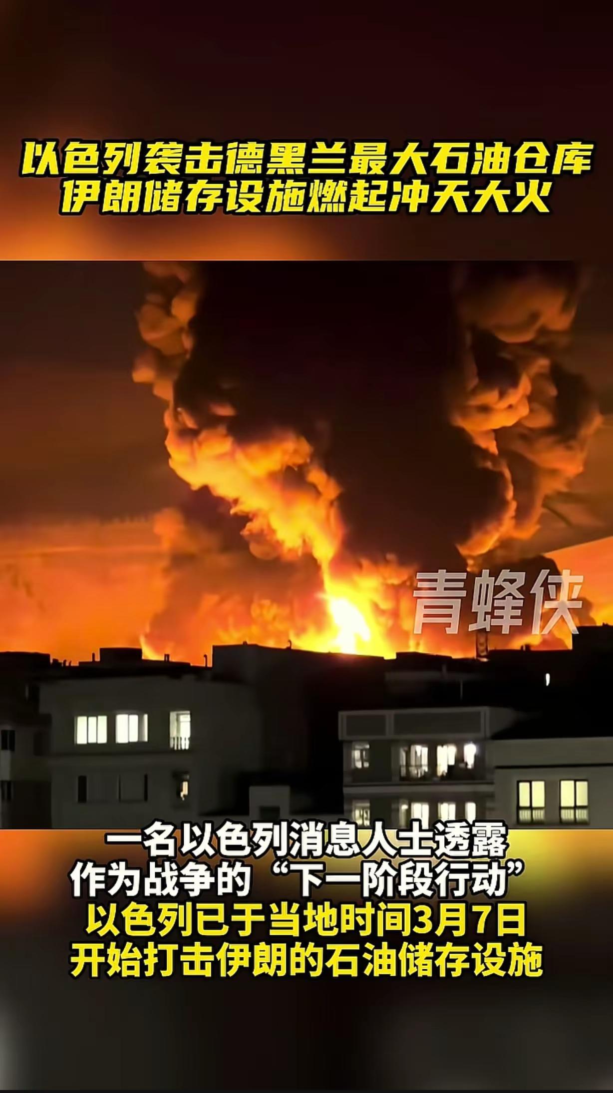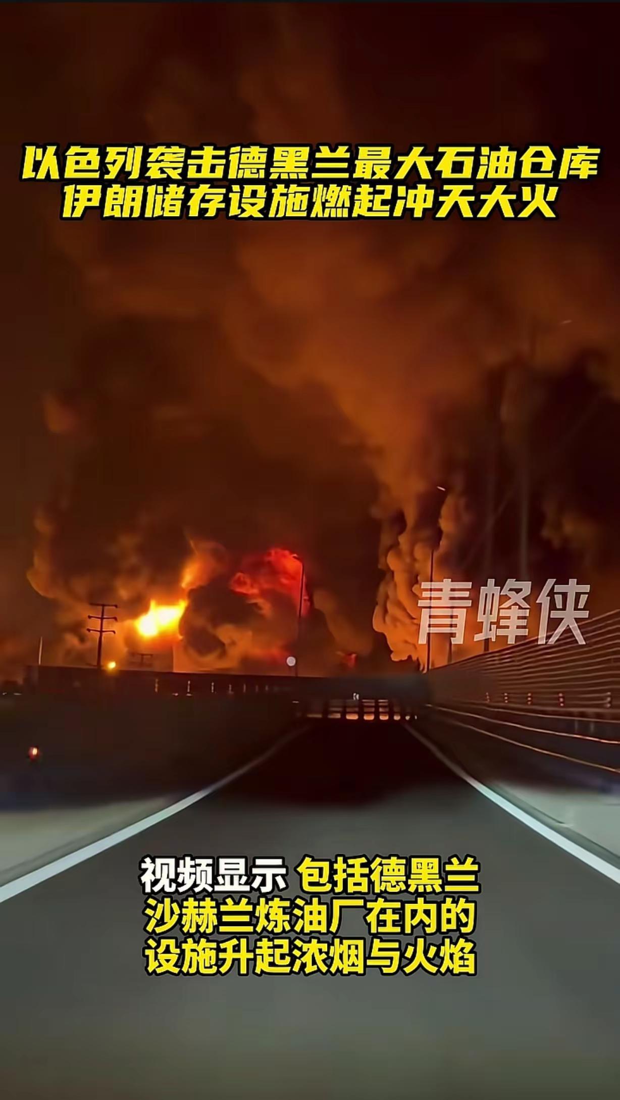 以色列袭击德黑兰最大石油仓库伊朗储存设施。