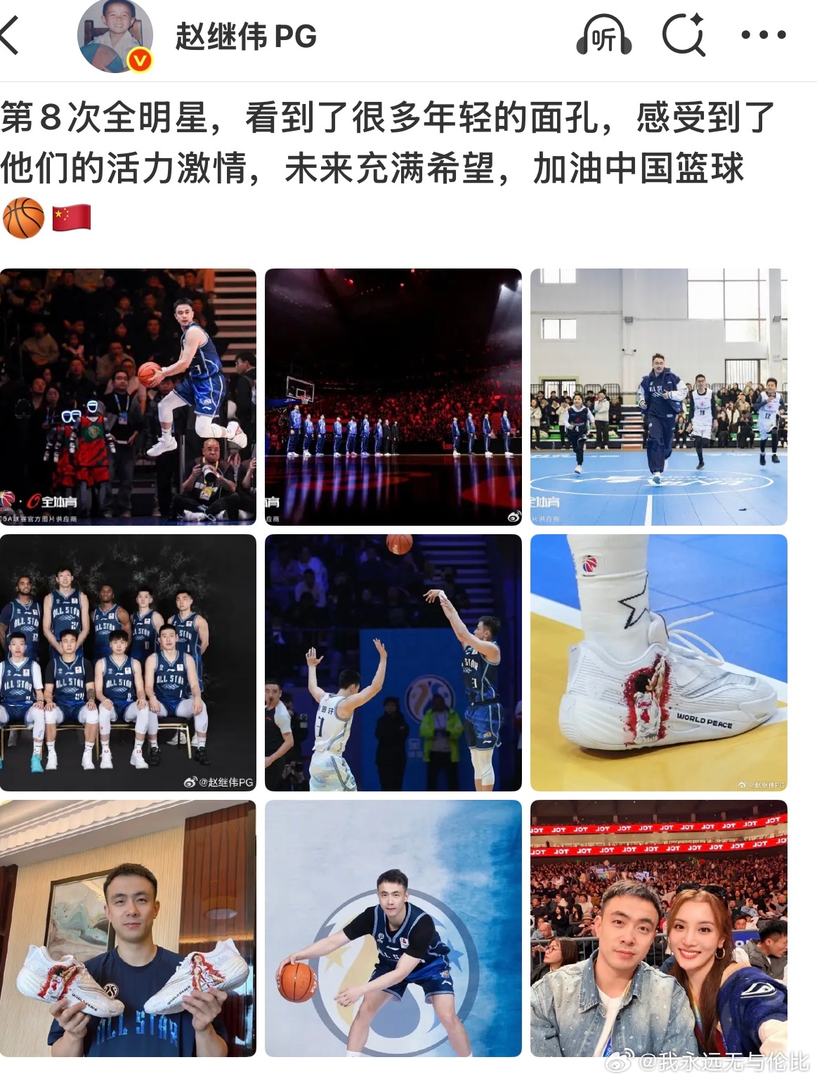 赵继伟当了国家队队长以后,这个觉悟确实是高,赵队现在心系的是中国篮球和中国篮球的未来,还有就是全明星的球鞋主题是希望世界和平,我觉得应该号召所有球员都能像队长学习,提高自己的认知,这样中国篮球以后才有希望和未来辽宁男篮CBA中国男篮赵继伟CBA全明星周末