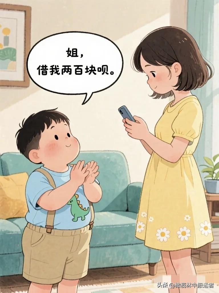 搞笑漫画:弟弟搓着手:“姐借我两百块呗。” 姐姐头也不抬:“上次五十还没还呢。” 弟弟拍胸脯:“这次不一样,我发工资立马还你!”