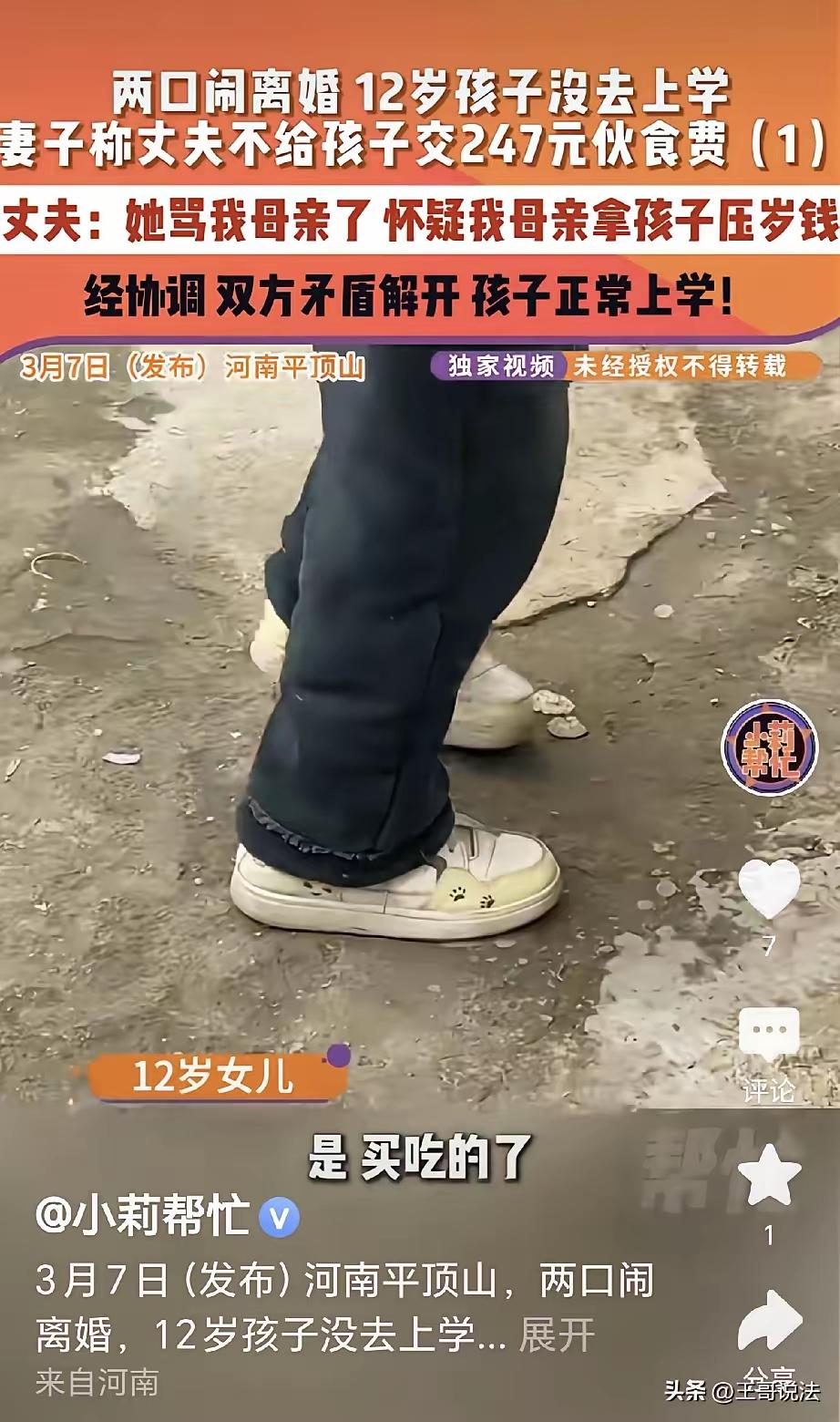 “这就是不上班的下场!”河南平顶山,一女子发现,婆婆趁她不在,进到她卧室,把门反锁,拿走了12岁女儿3000元压岁钱,女子张嘴就骂,丈夫不乐意了,立马不给她交生活费了,就连女儿学校的247元伙食费都不交了,女儿急了: “钱是我自己花了,买好吃的了!”妻子也急了: “我十几年没上班,他不给我钱,我没钱给老师!”男子非要离婚: “谁叫她骂俺妈!” 这场闹得不可开交的家庭矛盾,根源从来不是3000元压岁钱,也不是几句争执的气话,而是整个家庭里缺失的边界感和对全职主妇价值的彻底无视。婆婆未经儿媳允许,私自进入卧室还反锁房门,拿走孙女的压岁钱,这本就是触碰底线的行为,晚辈的卧室是私人空间,哪怕是长辈也没有随意闯入的权利,孩子的压岁钱属于长辈对未成年人的赠与,归属权在孩子手中,即便是父母也只能妥善保管,无权私自拿走。 女子当场发怒并非无理取闹,隐私被侵犯、孩子的财产被擅自处置,换做任何人都难以保持冷静。她十几年没有外出工作,不是贪图安逸不愿劳动,而是把所有时间都投入到照顾孩子、操持家务、打理家庭日常琐事上,洗衣做饭、照顾老小、打理家事,这些看不见的付出,撑起了整个家庭的正常运转,却在丈夫眼里变成了“不上班”的把柄。 丈夫的处理方式既偏激又不负责任,仅仅因为妻子指责了自己的母亲,就用切断经济来源的方式报复,不仅停掉妻子的生活费,连女儿247元的学校伙食费都拒不支付,把成年人的矛盾直接转嫁到妻子和未成年孩子身上。他全程只站在母亲的立场指责妻子,从未想过母亲的行为是否妥当,也从未体谅过妻子十几年操持家庭的辛苦,更忘了全职主妇的劳动,本就是家庭分工中不可或缺的一部分。 12岁女儿的谎言更让人心酸,孩子明明知道压岁钱是奶奶拿走的,却谎称是自己花掉买了零食,不过是害怕爸妈因为自己吵架,想用幼稚的方式平息家庭纷争。本该被呵护成长的孩子,被迫在父母的矛盾里小心翼翼,这场闹剧里,最无辜的就是这个夹在中间的孩子。 男子口中“不上班就该受这般对待”的想法,更是戳中了很多全职家庭主妇的无奈。我国民法典中明确认可家务劳动的价值,全职照顾家庭的一方,在婚姻中承担了更多家庭义务,并非依附于另一方的附属品。用“没上班”否定所有付出,用经济控制作为惩罚手段,从来不是解决家庭矛盾的方式,只会一点点耗尽夫妻情分,让家庭变得冰冷。 婆媳相处最核心的是守住边界,不随意插手晚辈的生活,不触碰他人的私人空间和财物,丈夫作为家庭的中间人,不该一味偏袒某一方,而是要理清是非,平衡好亲情和夫妻情分。尊重彼此的付出,守住相处的底线,才是家庭和睦的基础。 一句气话、一笔压岁钱,看似是小事,却照出了婚姻里最现实的问题,否定家人的付出、用强势姿态压制对方,再深的感情也会被消耗殆尽。 各位读者你们怎么看?欢迎在评论区讨论。