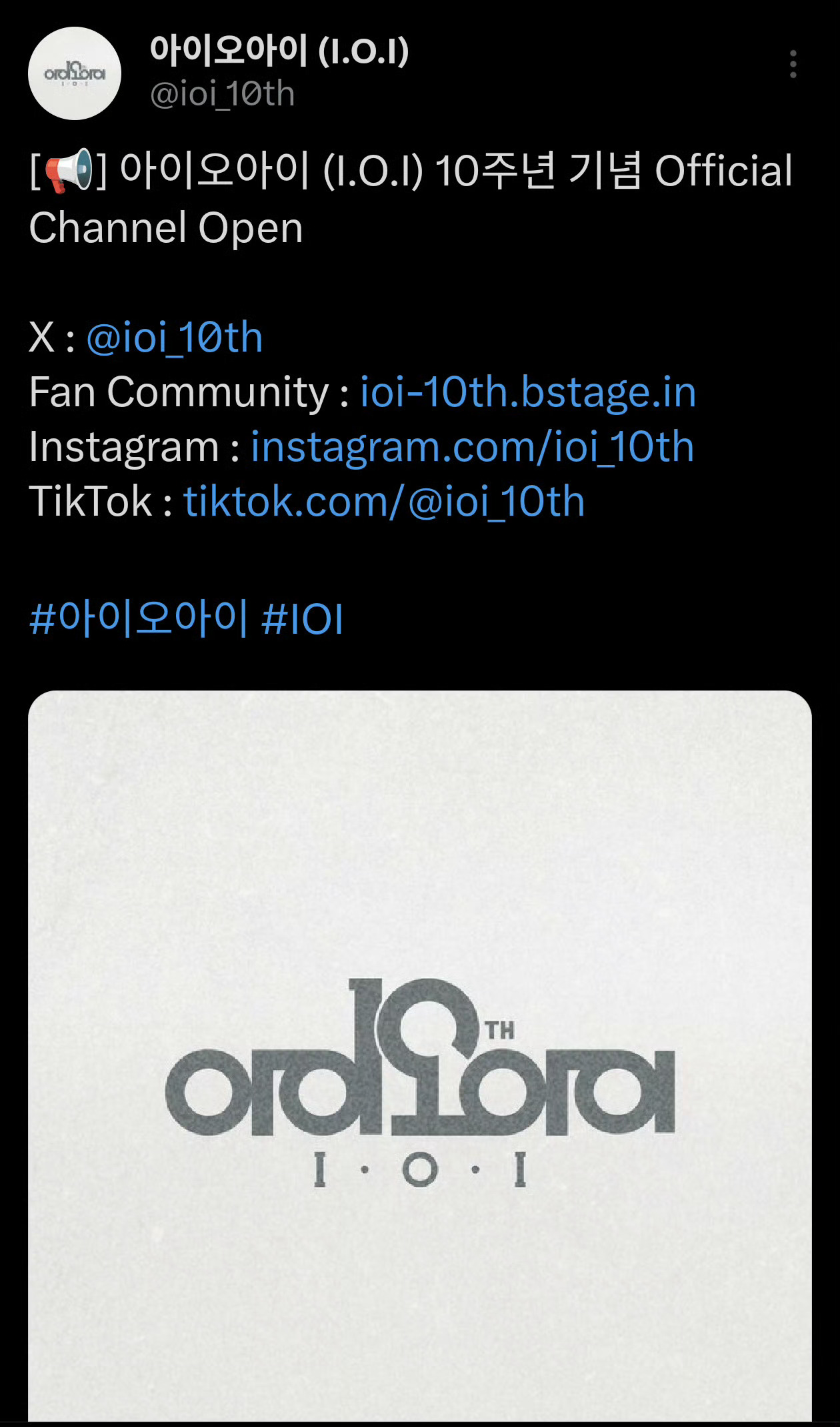 IOI开通ins账号 I.O.I出道10周年官方Ins账号开通,真的要来了吗越来越有实感了,燥候中!看来这次会把别人有我们没有的都安排齐了,可惜洁琼和美娜没法参加 IOI十周年回归官方账号开通