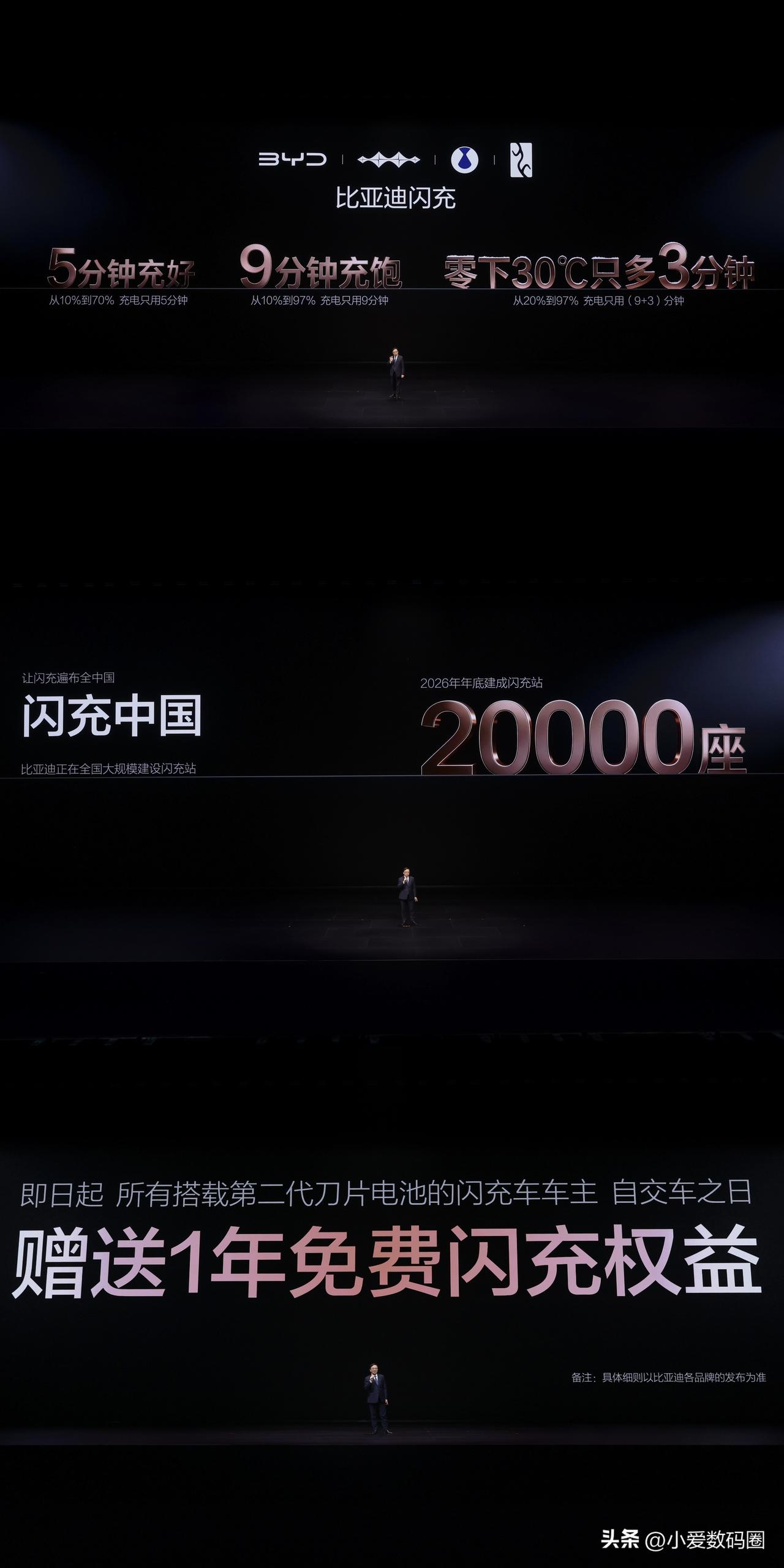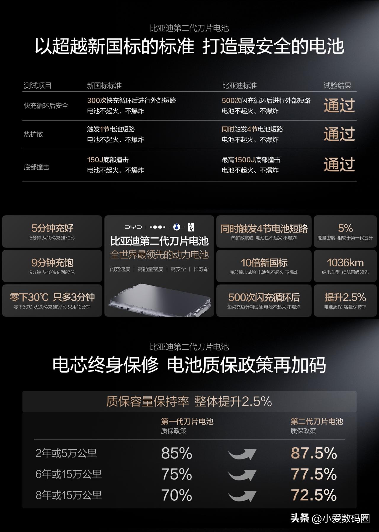 别再看续航1000公里了,那都是老黄历。电动车真正的痛点从来不是跑多远,而是节假日敢不敢上高速,冬天敢不敢开暖风。 比亚迪这次发布会,我全程看完,没怎么吹参数但很震撼,可以说全是硬货。第一代刀片电池140Wh/kg,第二代直接杀到190Wh/kg,涨了30%以上。更夸张的是行业内公认闪充和能量密度不可兼得,比亚迪反着来——闪充的同时能量密度反而比一代高了5%。 充电速度也是不讲武德,常温10%到97%,9分钟。零下30度,20%到97%,11分40秒。官方称“5分好,9分饱,3分寒”。以前电动车在东北是“电动爹”,现在“电车不过山海关”真要成为历史了。 充电桩也重新设计了。传统枪又沉又脏,比亚迪搞了悬吊式,2公斤轻量化枪线,单手跟拿吹风机差不多。更狠的是不挑桩,现有480万个桩插上也能比之前快30%-50%。 年底要建2万座闪充站,第一批车主送一年免费充电。当王传福说出“充电和加油一样快”的时候,我就知道,北方用户的钱包怕是捂不住了。硬核闪充技术树立行业新标杆,这次是真把电动化上半场收了官。