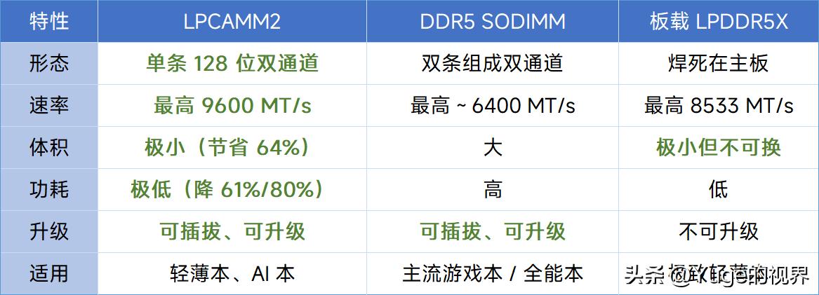 国产扬眉吐气!下一代可换内存的轻薄本,没想到这么快就来了。全球消费级首台搭载LPCAMM2内存的笔记本ThinkBook 14+/16+ 2026酷睿版,用的就是国产长鑫的LPCAMM2,未来轻薄本终于不用搞那个鸡肋的板载内存了,期待一众厂商早日把产品干到¥4999以内,让消费者有更多的选择 (下图个人做了内存规格对比,性能实用性爆杀当前LPDDR5) 轻薄ai笔记本 大内存轻薄本 国产化笔记本