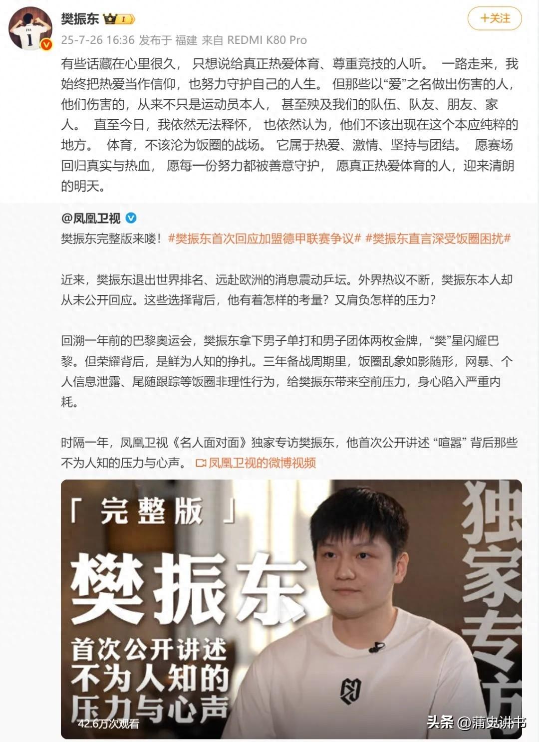 逼走樊振东?刻意打压陈梦、排挤张继科,刘国梁身上的谣言太离谱 刘国梁近期的一段采访,击碎了围绕他多年的离谱谣言。从 “逼走樊振东” 到 “打压陈梦”,再到 “排挤张继科”,传言从未断过。如今真相浮出水面,这些说法根本站不住脚 2026 年 3 月 5 日,刘国梁在两会现场接受采访。记者问及樊振东加盟德甲的选择,他给出了明确肯定。他表示这就是体育的魅力,球星也能成为世界的球星。这番表态,直接终结了 “樊振东被刘国梁逼走” 的谣言 时间回到 2025 年 6 月,樊振东官宣加盟德甲萨尔布吕肯俱乐部。消息一出,各种恶意揣测迅速蔓延。有人声称他与刘国梁不和,被迫远走海外。谣言的源头,是樊振东 2024 年底退出 WTT 世界排名 事实上,樊振东的选择有清晰的官方依据。他在声明中提到,巴黎奥运后身心俱疲,需要休整。同时,WTT 的高额退赛罚款新规,让他难以承受。中国乒协也明确表示,尊重并支持他的个人决定。他去德甲,是为了寻找更安静的训练环境,提升自我。这一切都是自主选择,与刘国梁无关 类似的谣言,也曾缠上女乒名将陈梦。巴黎奥运会后,陈梦同样退出了世界排名。有人借机造谣,称她因不迎合刘国梁而被打压。谣言的依据,是刘国梁曾对她的冠军表现作出点评 当时陈梦首夺奥运单打冠军,刘国梁给出了严格的评价。他表示,拿过一次不算成功,两届才叫成功。熟悉刘国梁的人都清楚,这是他一贯的执教风格。马龙、张继科等顶尖选手,都曾接受过他的严厉批评。这种批评的初衷,是提醒运动员戒骄戒躁,稳步前行 陈梦此后持续作为女队主力出战,拿下多个冠军。这足以证明,所谓 “打压” 纯属无稽之谈。张继科的相关谣言,同样离谱。有人称,刘国梁因他桀骜不驯,刻意排挤不让参赛 事实是,张继科的淡出,核心原因是严重伤病。2015 年,他被诊断出双侧腰骶骨裂,膝盖磨损严重。高强度的训练和比赛,让他的身体早已不堪重负。他在直播中坦言,腰伤严重影响到日常生活 2019 年,张继科退出国家队集训,逐渐淡出赛场。中国乒协于 2023 年 4 月,正式确认他的退役状态。刘国梁对他的培养,有目共睹。张继科冲击大满贯的关键期,刘国梁全程陪伴调整状态。他能成为最快大满贯得主,离不开刘国梁的指导 如今,刘国梁已卸任乒协主席,仍在为乒乓事业出力。他以国际乒联第一副主席的身份,推动项目发展。公众人物难免被议论,但议论不能变成造谣。理性看待运动员的选择,才是对他们最好的支持。你怎么看待这些针对刘国梁的谣言?评论区聊聊你的看法 官方信源:凤凰卫视 2026 年 3 月 5 日刘国梁采访;樊振东 2024 年 12 月 27 日个人声明及中国乒协回应;中国乒协 2023 年 4 月关于张继科退役的确认;新浪体育 2025 年 4 月张继科伤病报道