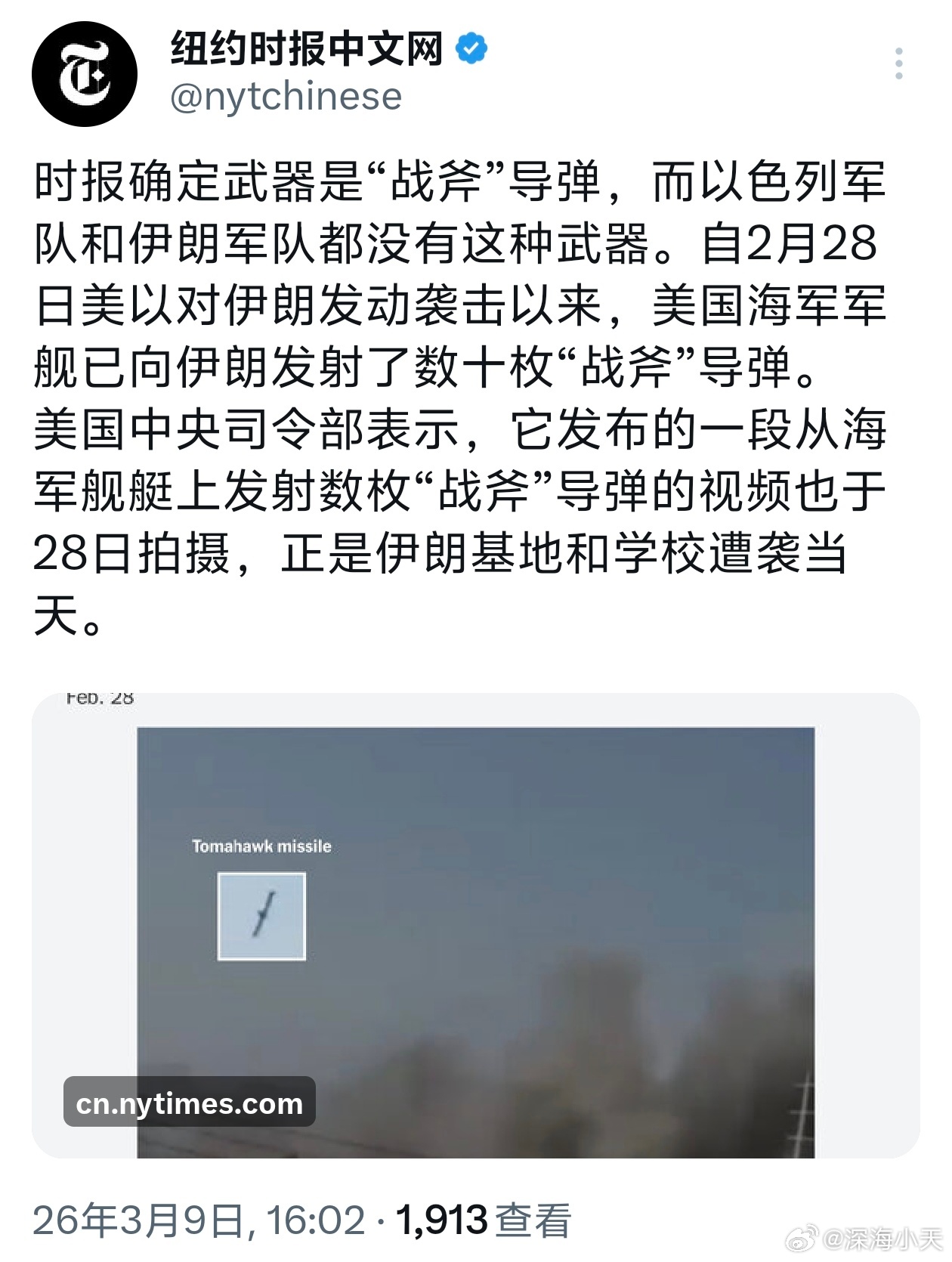 以色列称女子小学是伊朗自己炸的,被纽约时报打脸以色列总理内塔尼亚胡首席外交政策顾问奥菲尔·法尔克在CNN上,指伊朗女子小学被炸的原因是伊朗导弹“发射失败”。对伊朗来说,这是一种策略。他们想要尽可能多地杀死平民。纽约时报3月9日报道,确定袭击小学的武器是“战斧”导弹,而以色列军队和伊朗军队都没有这种武器,确定是美国导弹。以色列军警大量拆除路边摄像头外交部回应伊朗宣布新任最高领袖