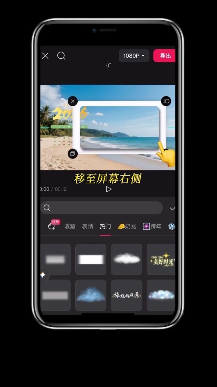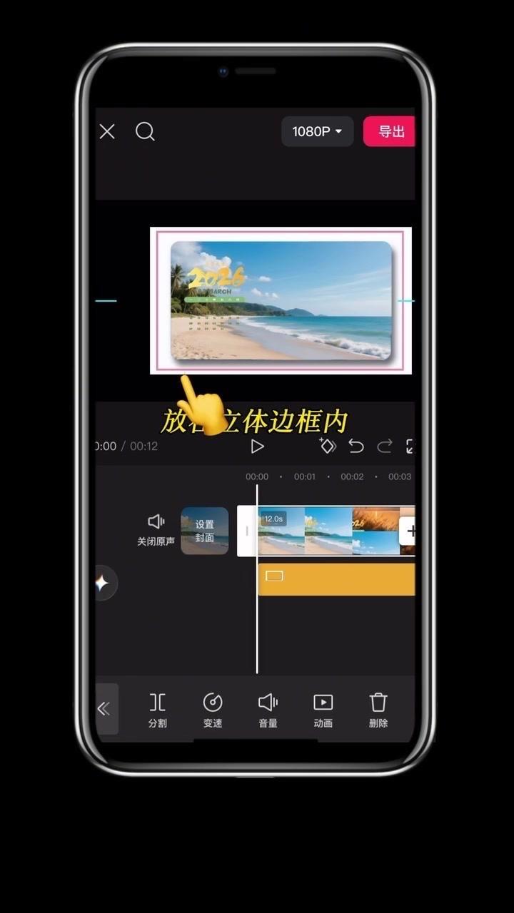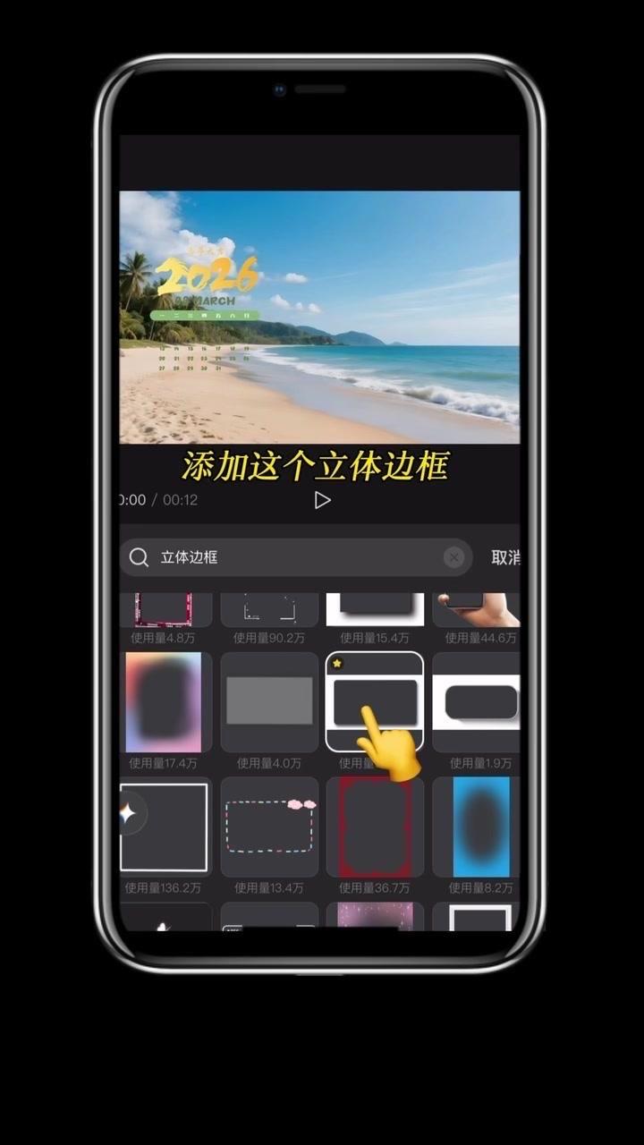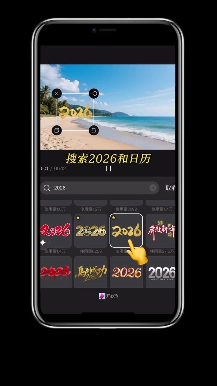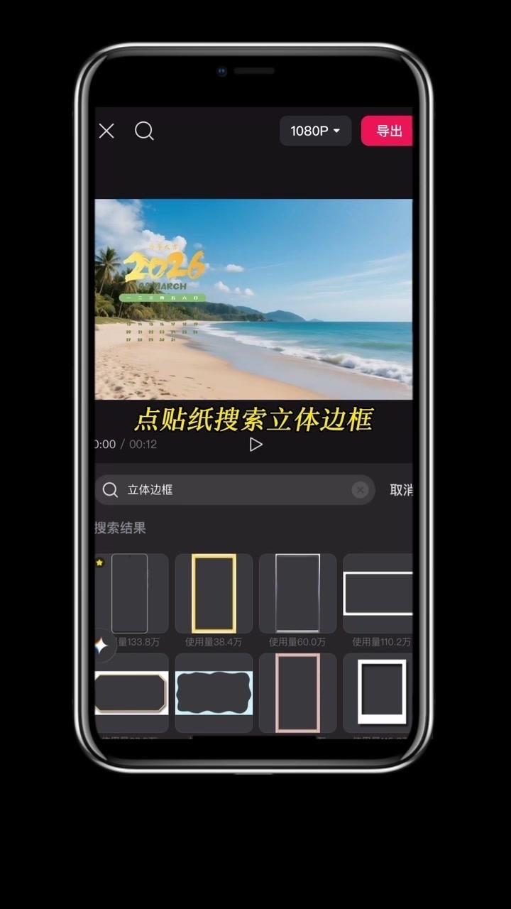 1️⃣准备素材:先导入几段2秒左右的视频,点击中间小白块,添加幻灯片下移时长并拉满应用全局。 2️⃣制作日历:点贴纸搜索2026日历摆好位置,音效添加撕纸声放在转场小方块下,导出备用。 3️⃣立体效果:重新导入素材,添加立体边框并移至右侧,主视频缩小放边框内,用吸色取画布颜色,最后添日历环和其他贴纸。