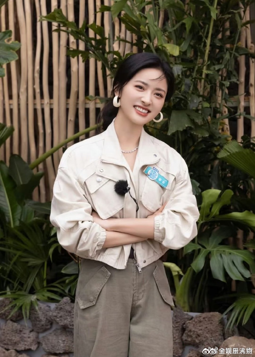 刘亦菲这条裤子挺养生,毕竟降温了肚脐眼必须护住啊