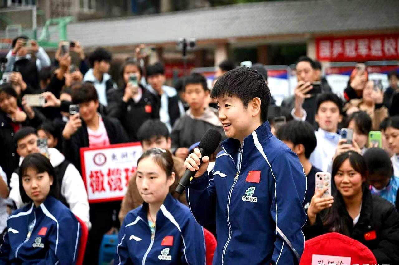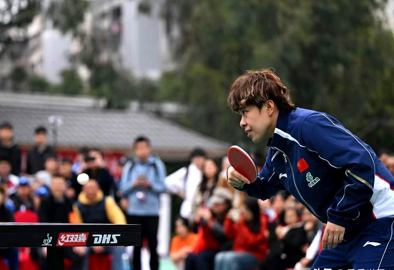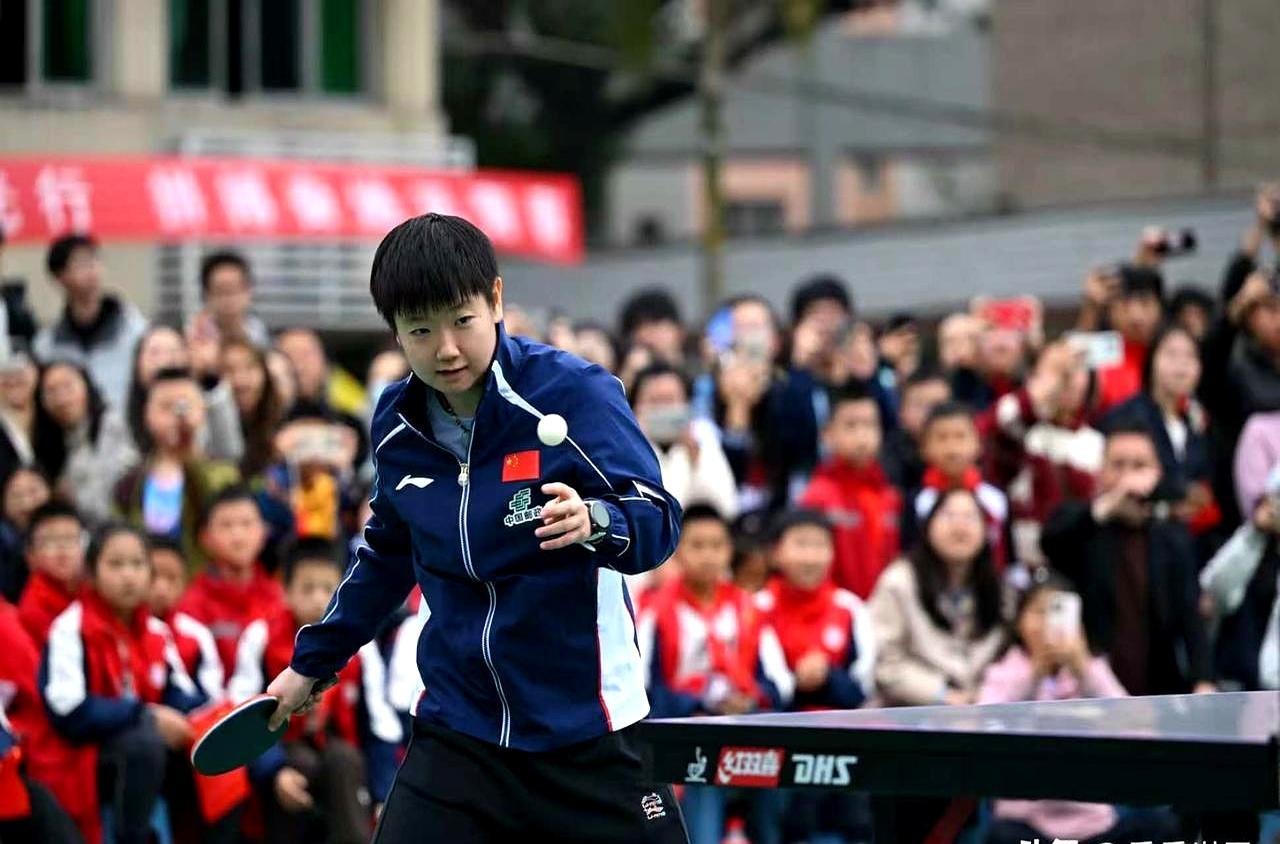 WTT重庆冠军赛开赛前2天,国乒女队没在封闭训练。 她们出现在重庆巴南鱼洞中学的体育馆里。 和学生对打时刻意放慢节奏,耐心帮人调整握拍姿势、找击球落点。 孙颖莎被问到遇挫怎么办,说别慌,先总结问题,再抱着热爱往前冲。 现场有学生画了国乒卡通形象,她站在画跟前看了好久,特意签了名。 我们总觉得顶级运动员的价值只在赛场拿金牌。 其实蹲下来给普通孩子讲输球的经历,把对乒乓的热爱递到普通人手里,也是另一种含金量的冠军答卷。 换做是你上学时能和孙颖莎打一局,最想请教她什么?