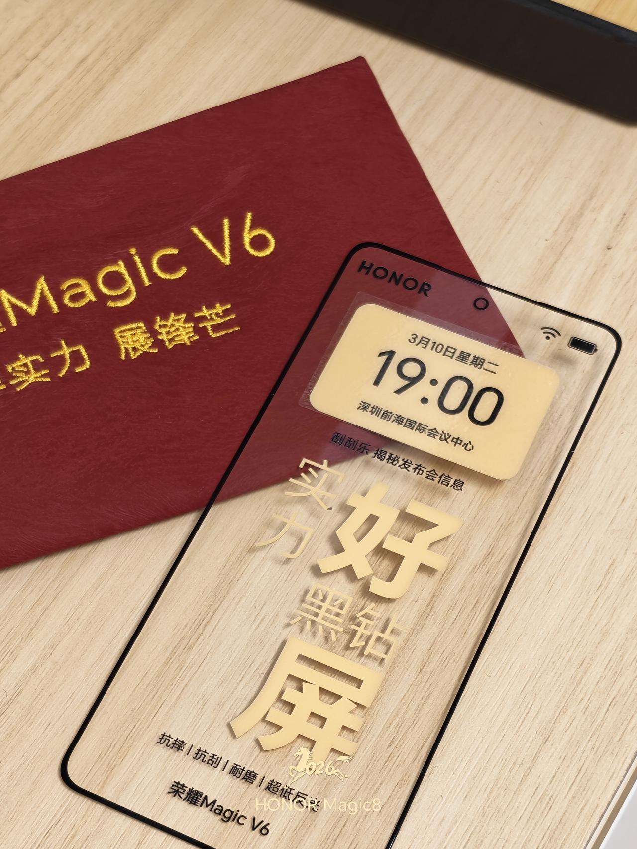 荣耀Magic V6邀请函太会整活!直接寄来同款屏幕盖板+砂纸,让你亲手打磨测耐磨,边磨边解锁发布会信息。赤兔红皮具包装超有质感,还没开发布会,先把屏幕抗造实力秀明白了,大家是不是也很狠期待了[奸笑]