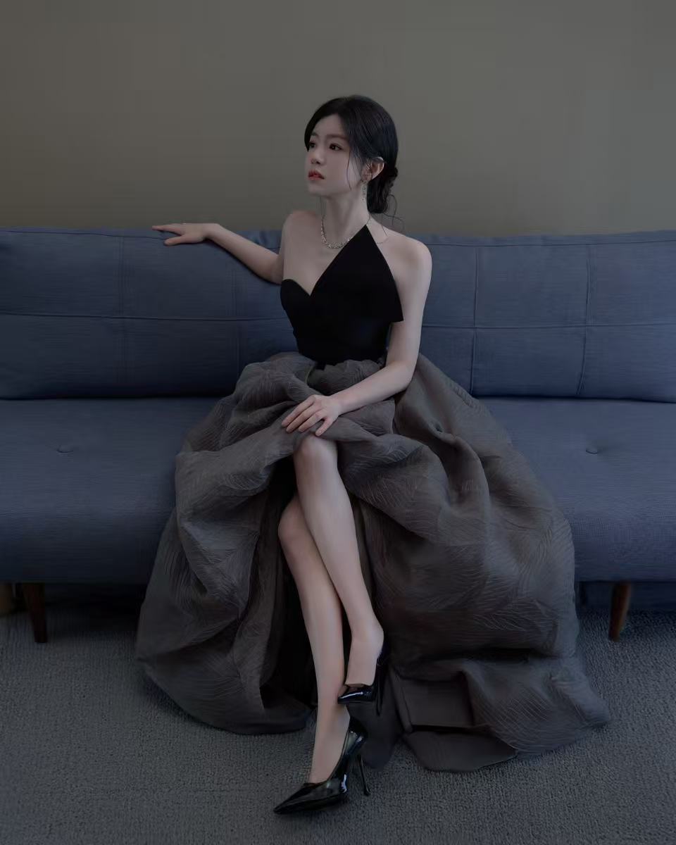 陈妍希蝴蝶结抹胸裙 白鹿卢昱晓陈妍希生镜头 陈妍希这套黑灰礼服也太绝了!单肩设计暗藏巧思,简约中不失浪漫,灰色裙摆仙气飘飘,优雅中带着致命吸引力!