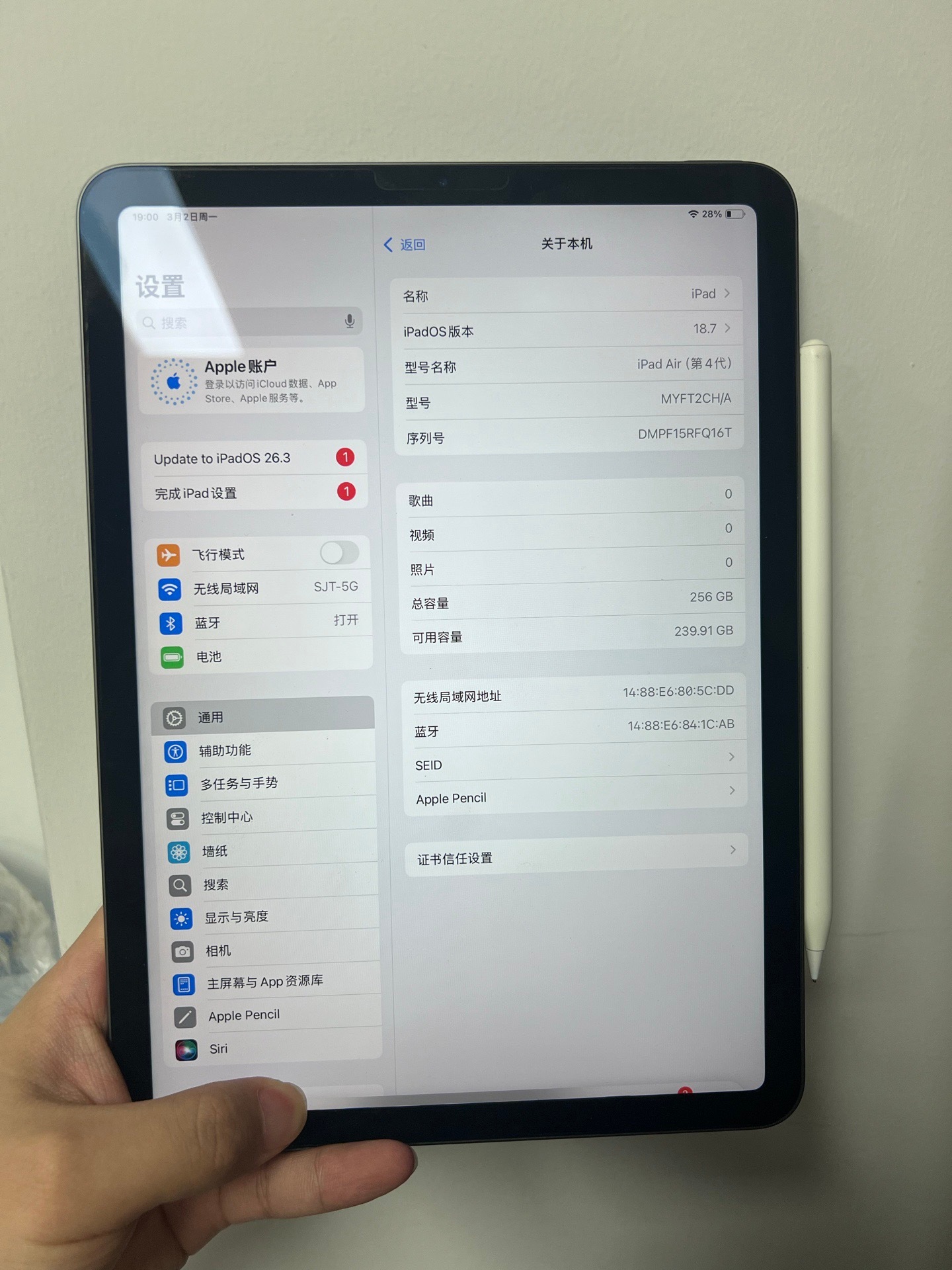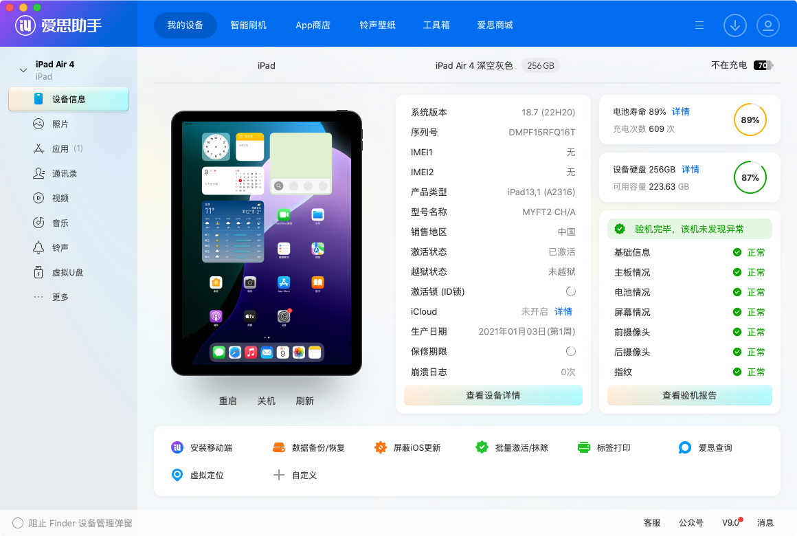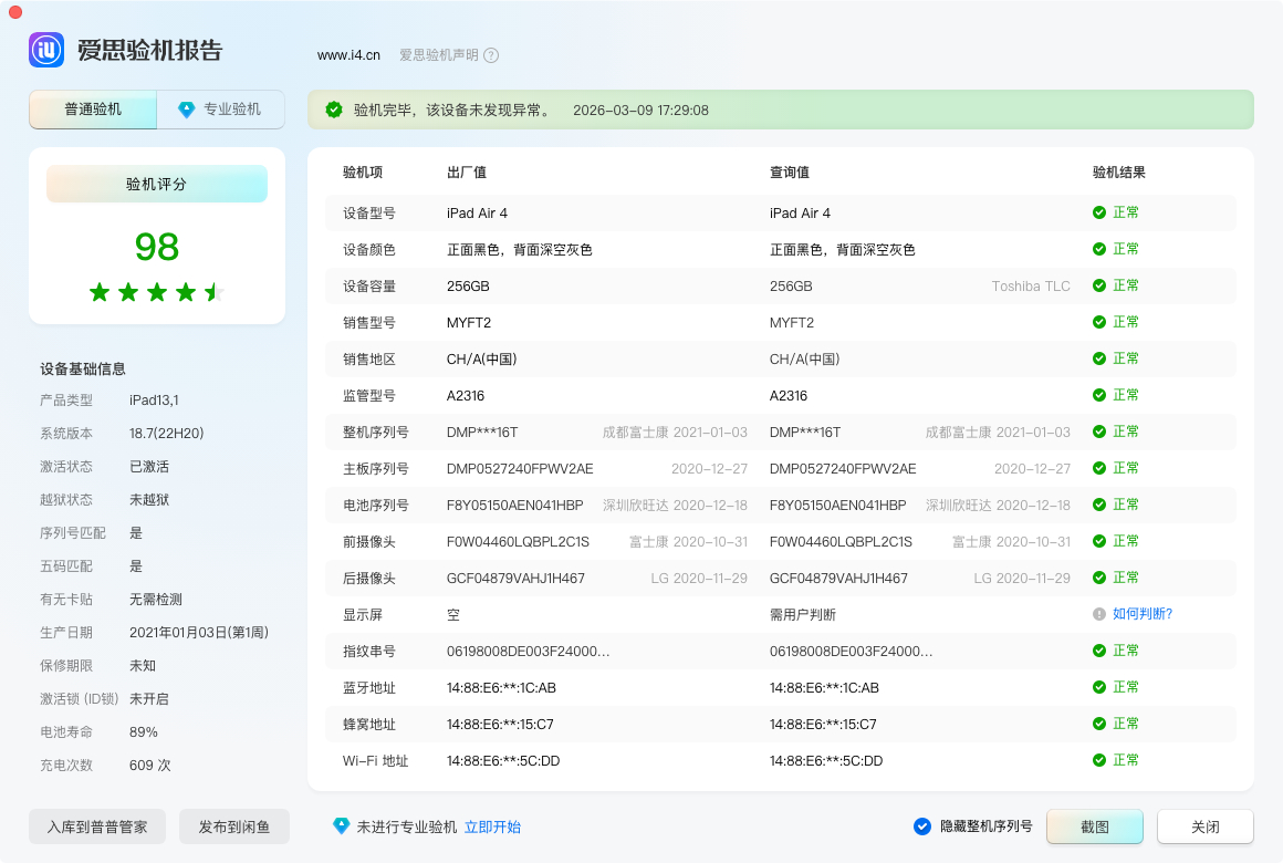 最新回收一台iPad Air4 10.9寸 国行WiFi 256G 靓机