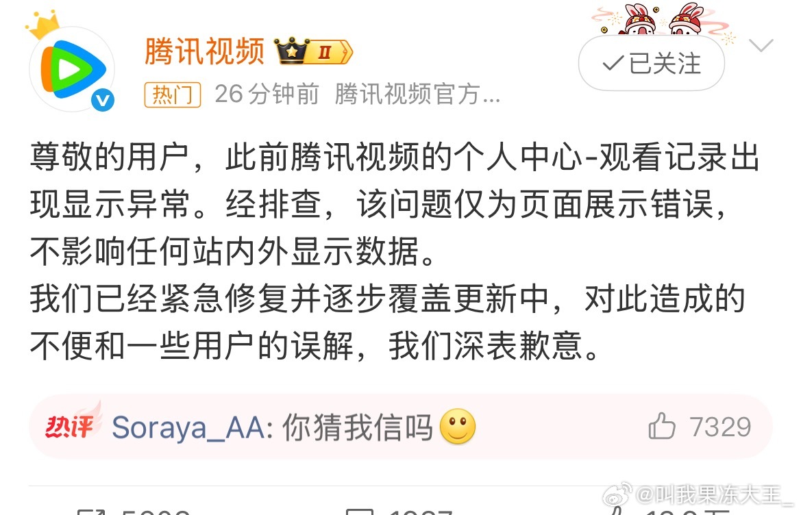 腾讯视频回应播放异常