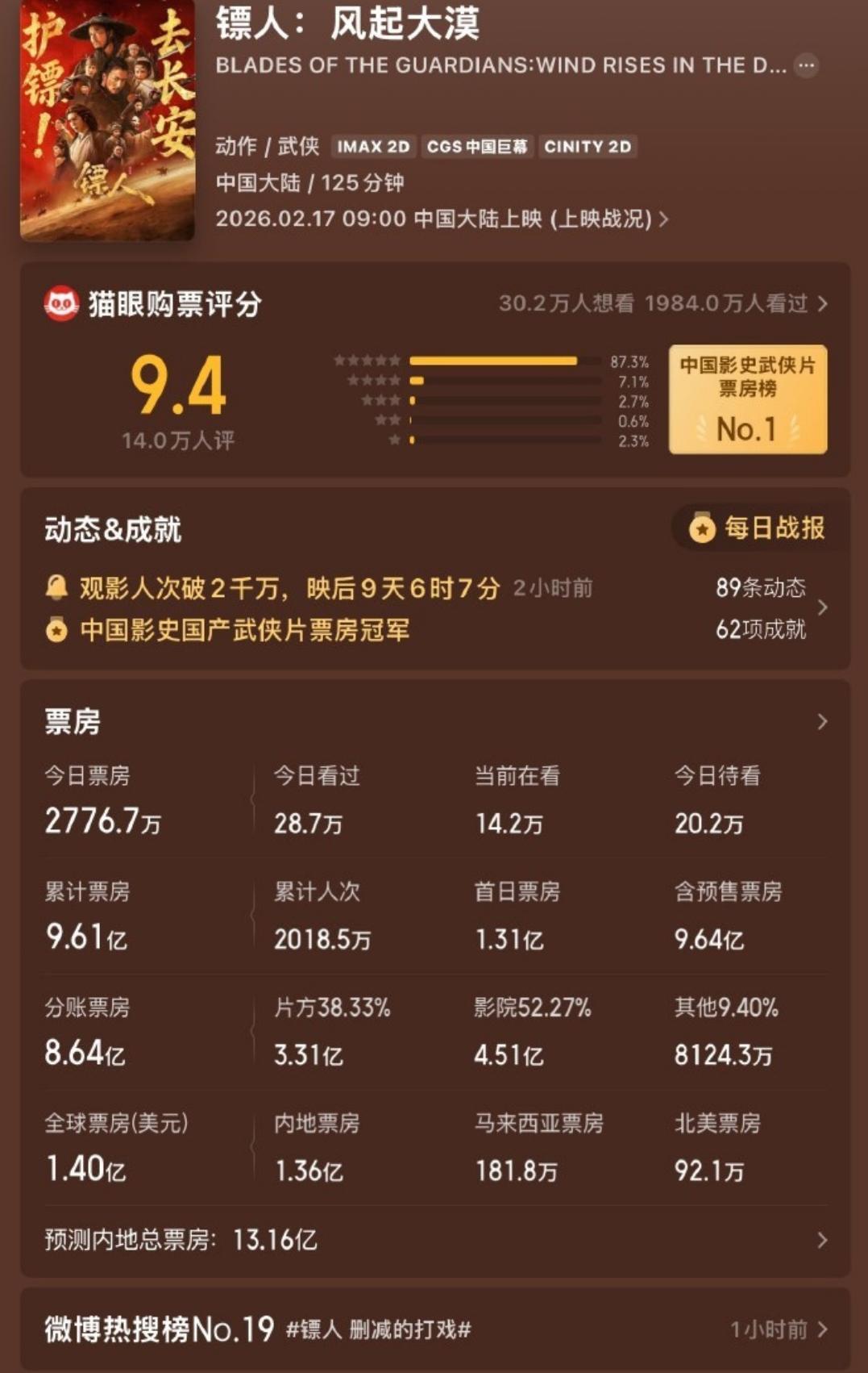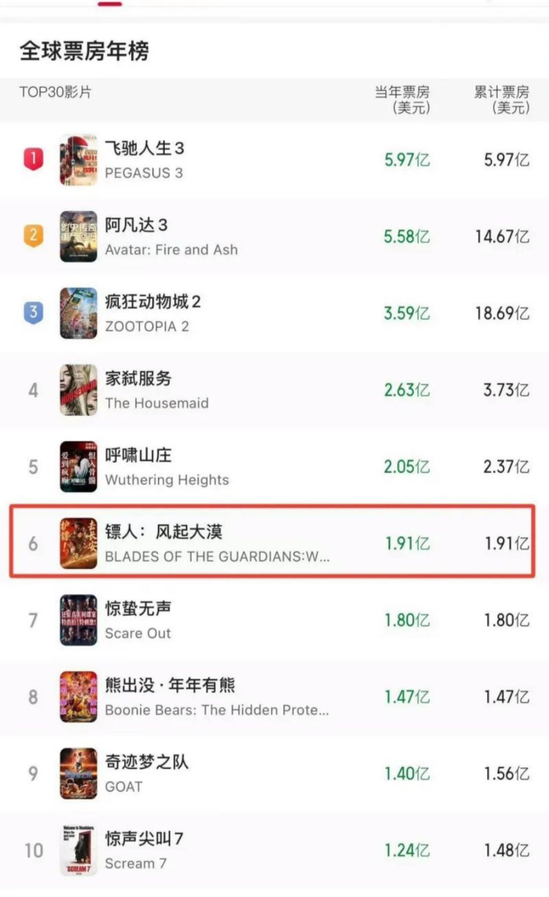 国产武侠片《镖人:风起大漠》在海外强势崛起,一举升至全球武侠片票房亚军,引发热议