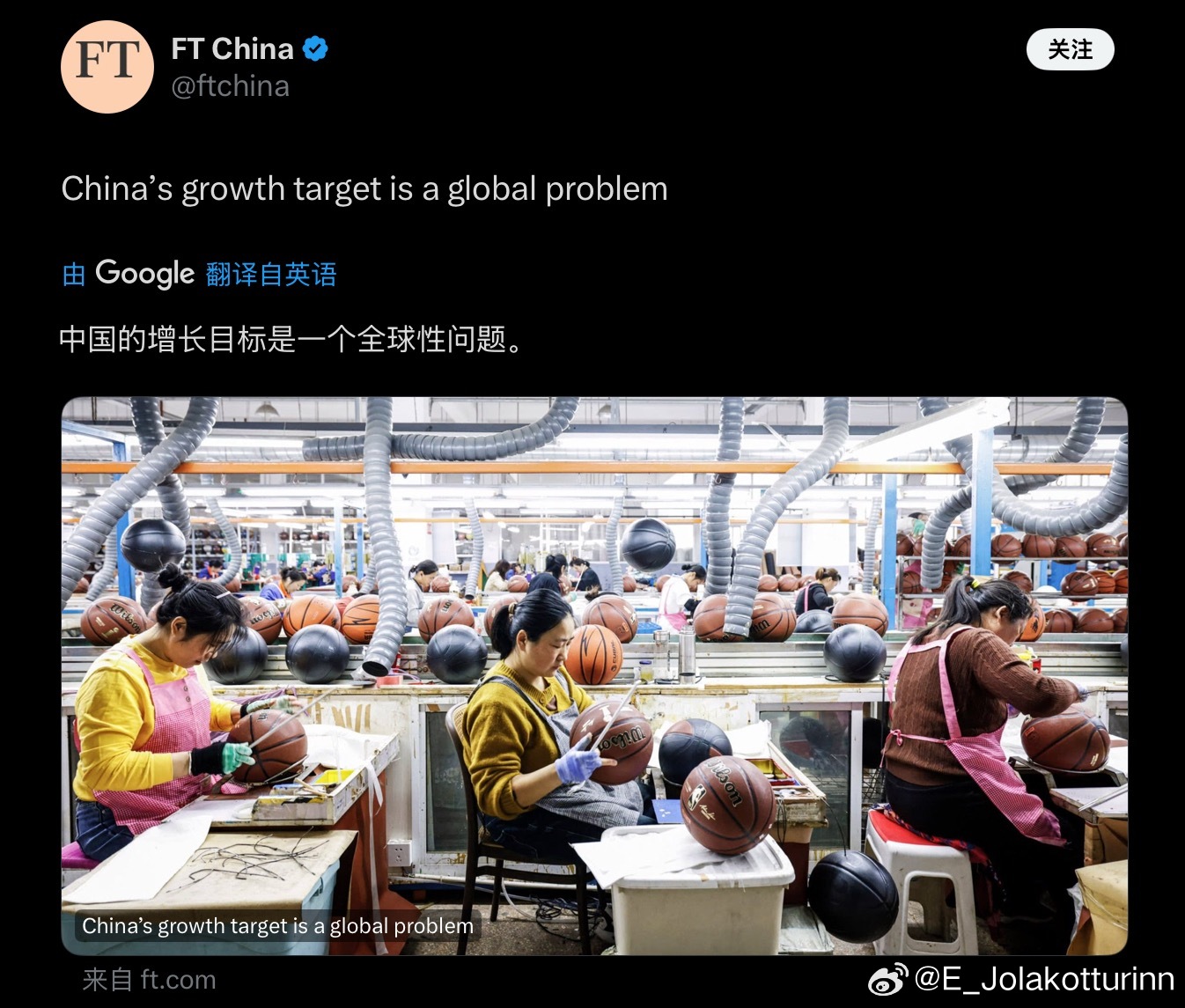 什么都赖中国呗,配图还专门挑了个小作坊给西方人做篮球的画面