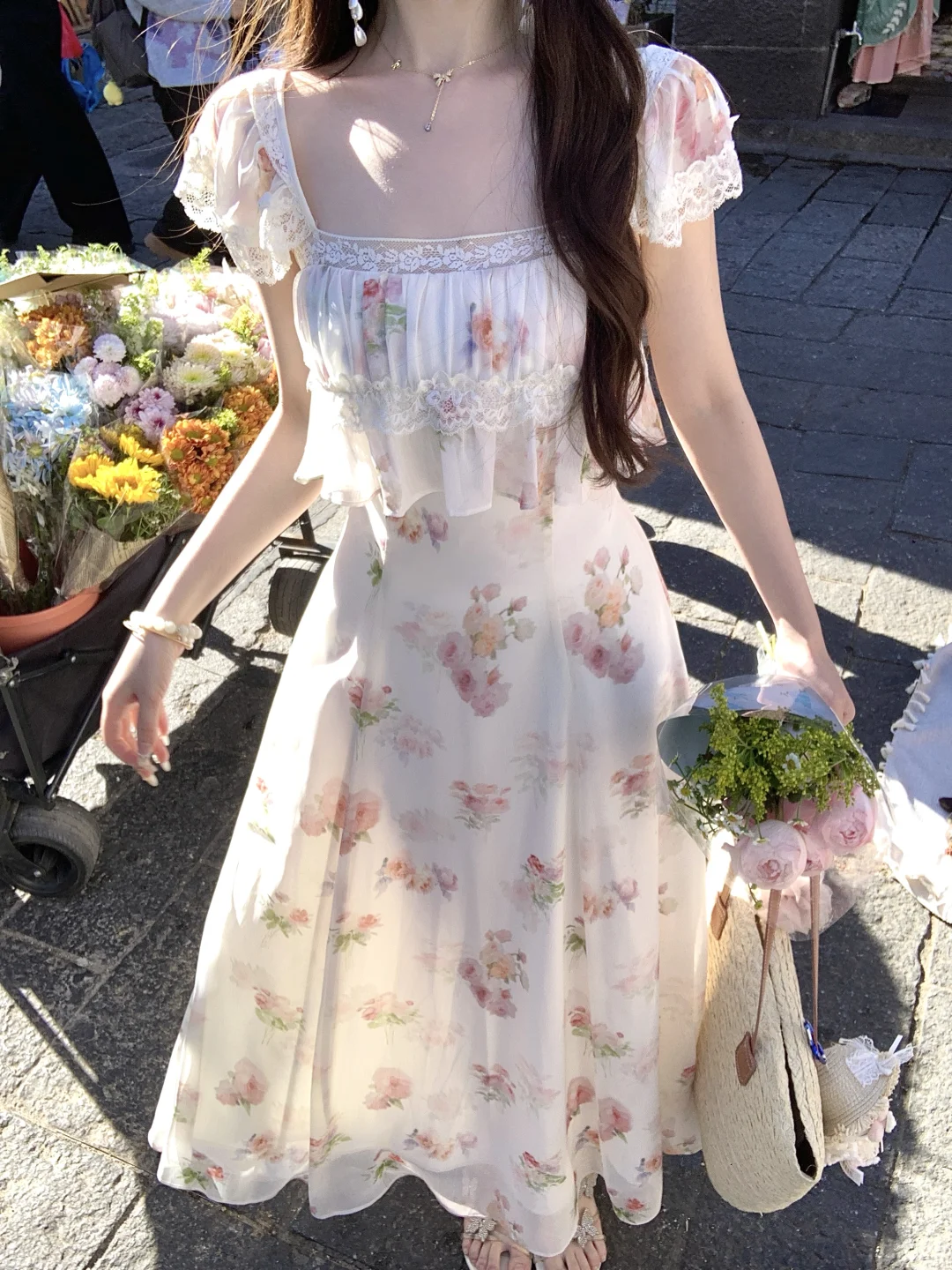 氛围感神仙小裙子 法式碎花裙 碎花裙 把花丛穿在身上