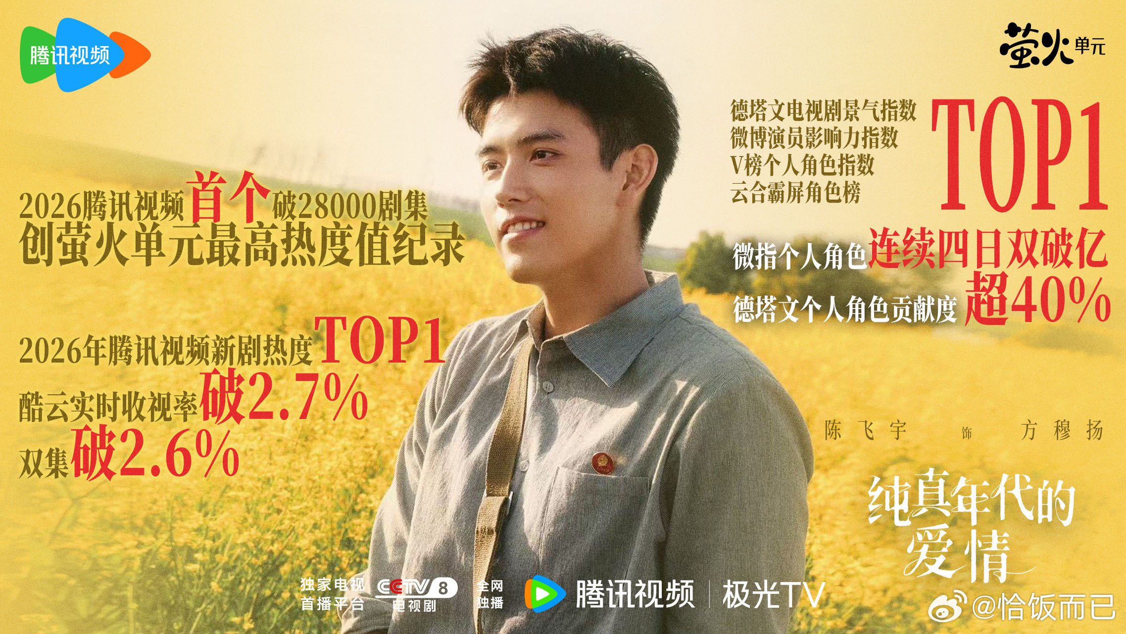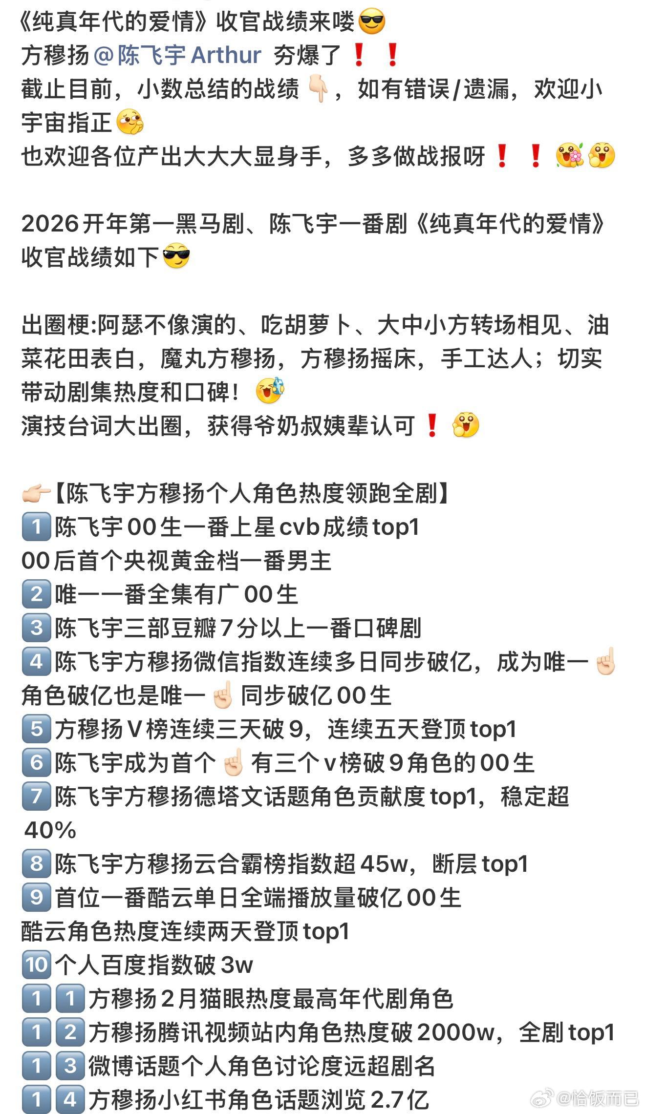 什么叫剧圈001!陈飞宇00生扛剧天花板,这才叫实绩👉陈飞宇一番剧创央八收视新纪录,德塔文贡献度超40%,一番实绩断层TOP1,豆瓣开分7.3,方穆扬实火!