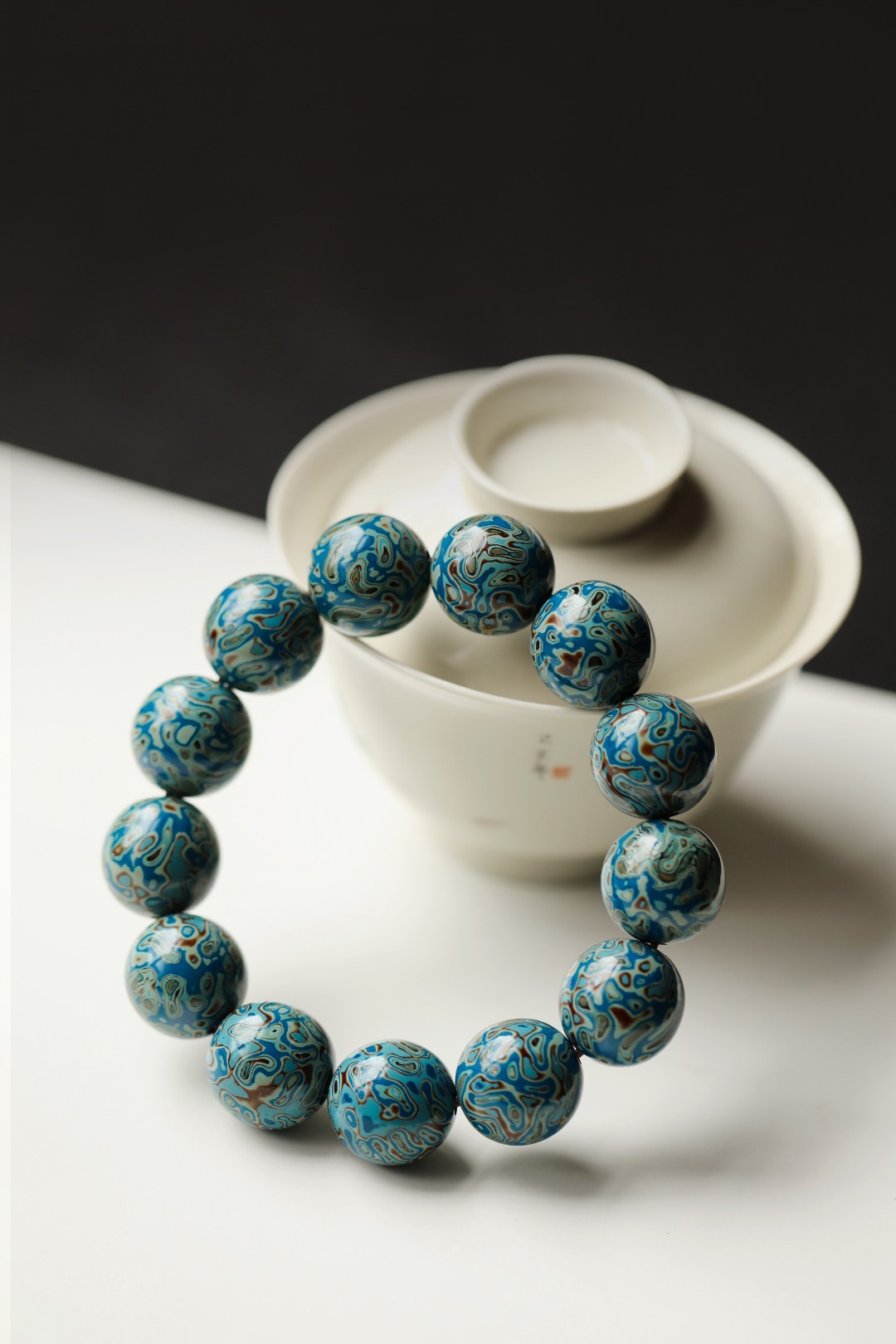 天然大漆,大美绚烂。游于纹理之间,醉于色彩之美。 大漆【晴蓝】18mm13颗 手串
