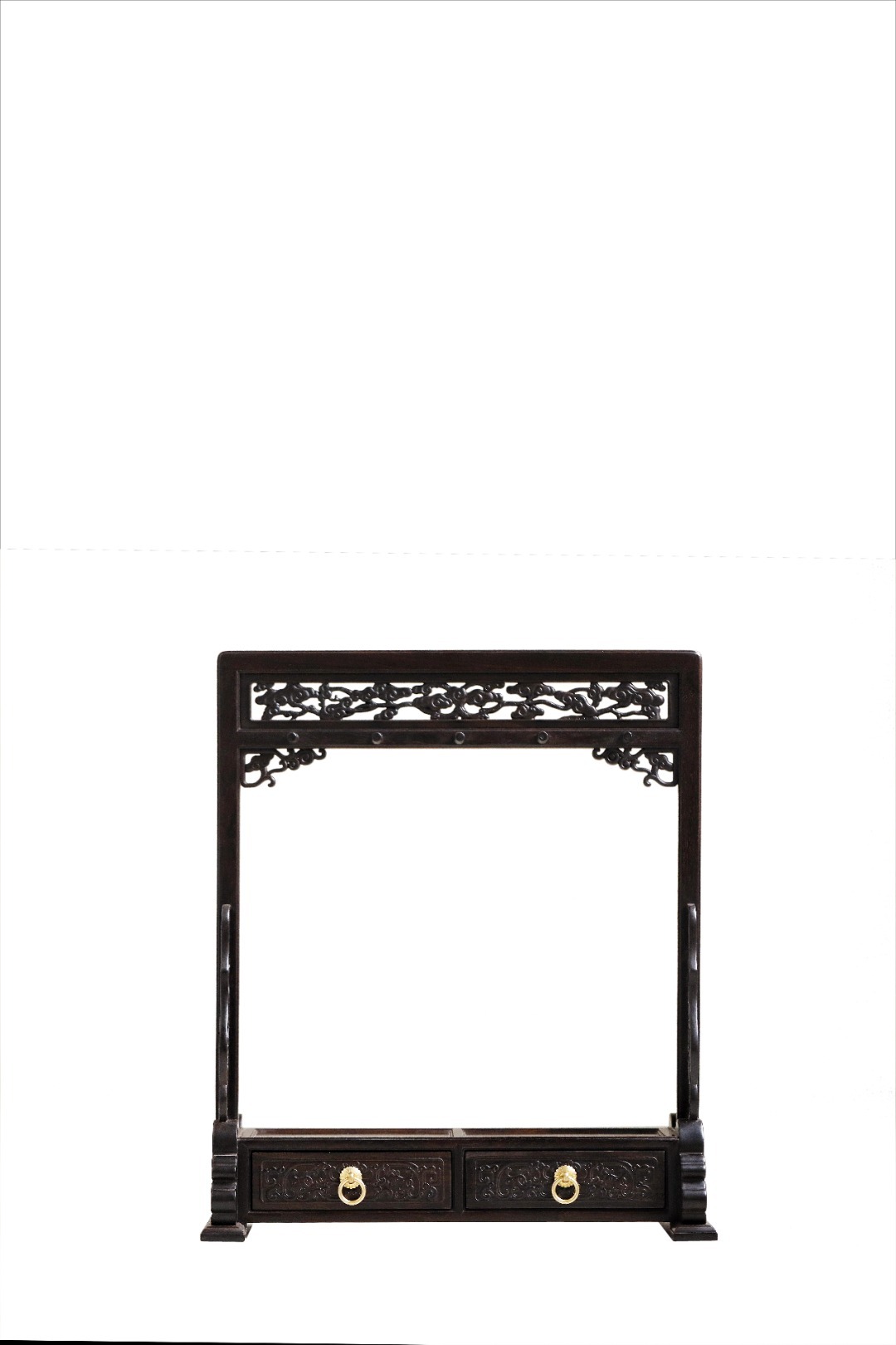 紫光檀|螭龙灵芝纹·笔挂明式经典器型,底座平稳,带二抽屉,浮雕螭龙纹,可