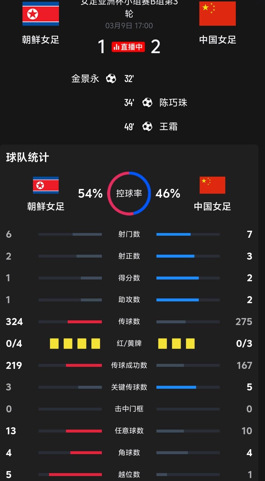 中国女足最终在先落后的情况下,最终2:1逆转击败朝鲜女足,在获得小组头名的情况下,接下来淘汰赛对手会更弱,而朝鲜女足要去面对东道主澳大利亚女足!