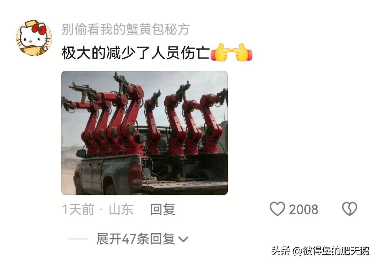 哎呀,这届网友不要太有才啊。 看到这六轴机械臂还可以这么用,突然想起来一个事儿:以前国内上世纪80年代搞国企军转民改革,军用设备直接转民用,结果就是直接拿离心机搅拌牛奶做冰淇淋。 现在反过来了,这不民转军分分钟的事儿嘛,只能说明咱武德丰沛啊。